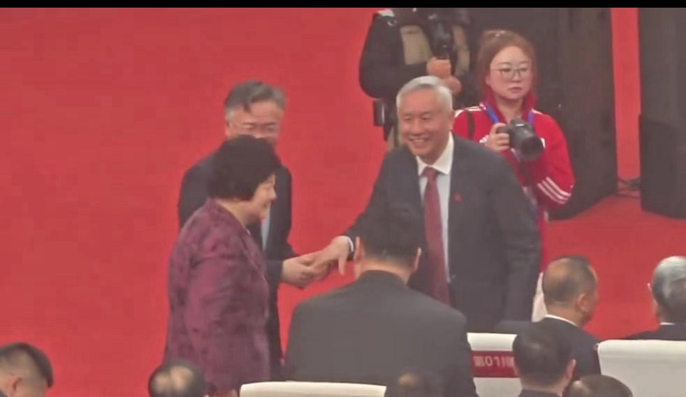 庆典现场,姚明身着笔挺的黑色西装,沉稳大气。为了不遮挡后排观众的视线,他特意选择了第二排靠边的座位,即便如此,2米26的身高依旧让他在人群中鹤立鸡群,哪怕坐着也比身边站着的人高出一大截,画面极具辨识度。校领导看到姚明后,主动上前热情打招呼、拍肩谈笑,全程笑容灿烂,尽显对这位杰出校友的重视与喜爱,而姚明也始终保持谦逊随和的态度,与母校同仁亲切互动,细节里满是对母校的尊重与深情。