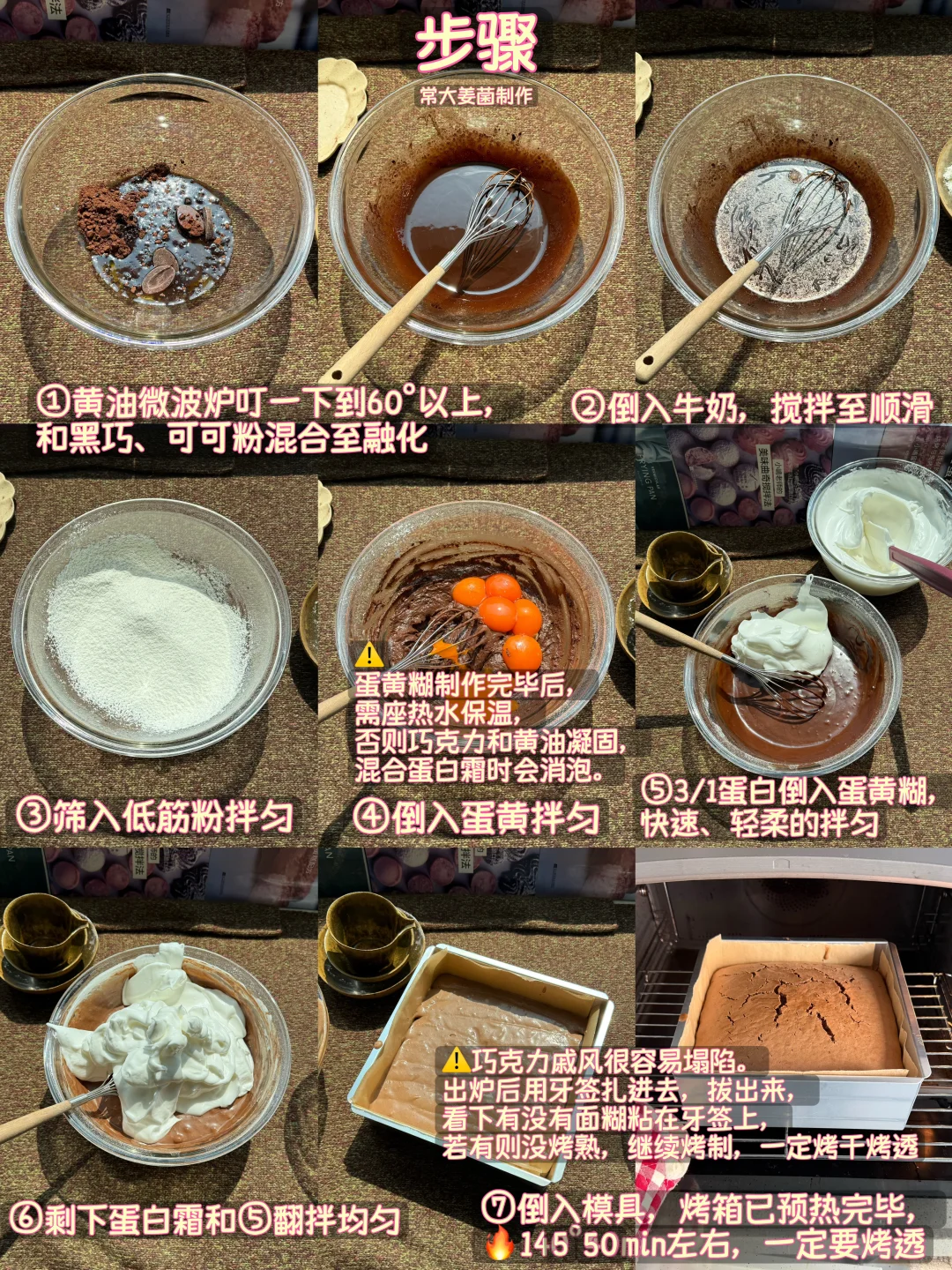 可可戚风容易消泡,注意事项写在步骤图里了,我再写下,大概率不会失败