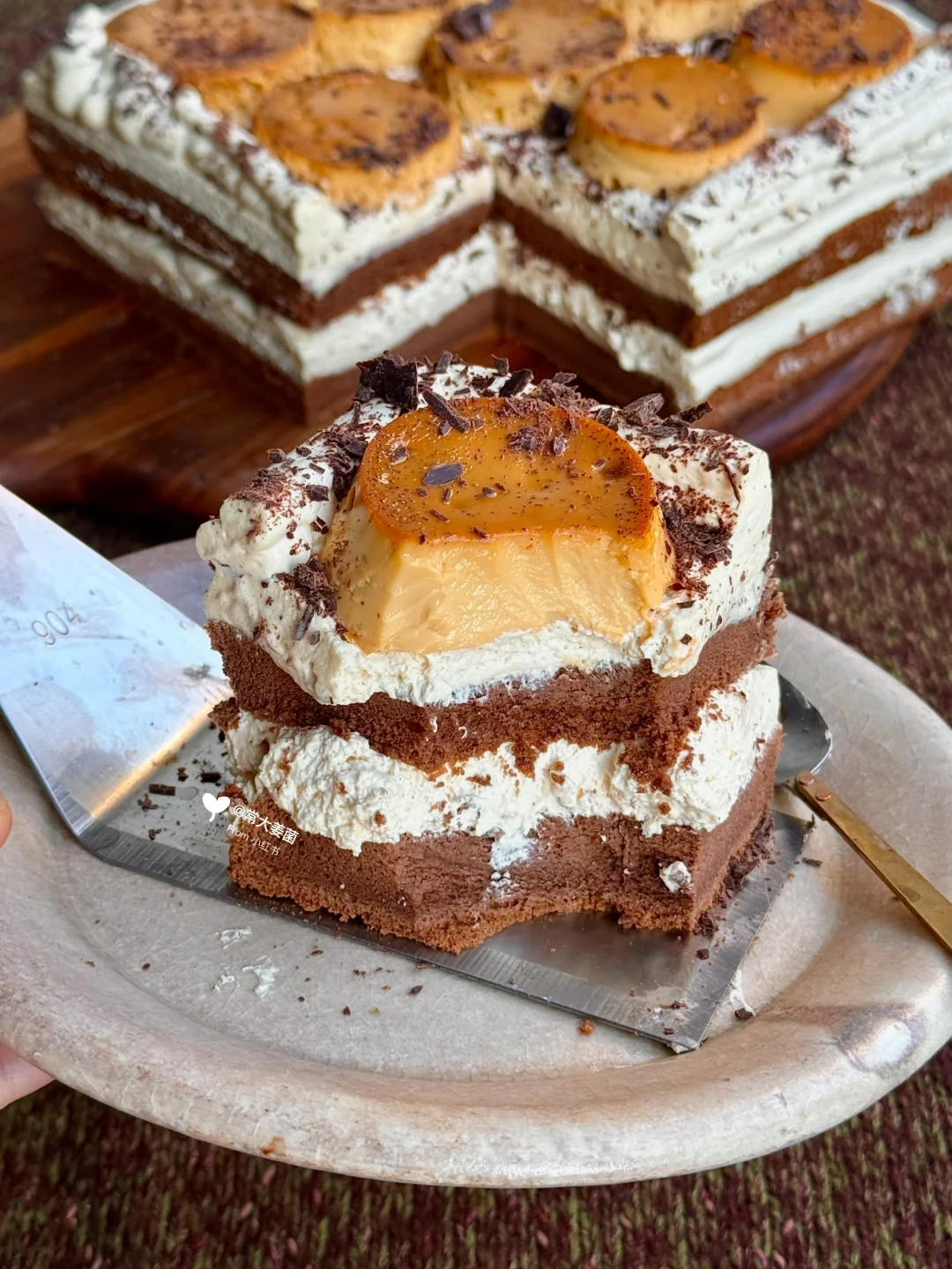 馋了好久的《焦糖布丁巧克力蛋糕》做出来了~