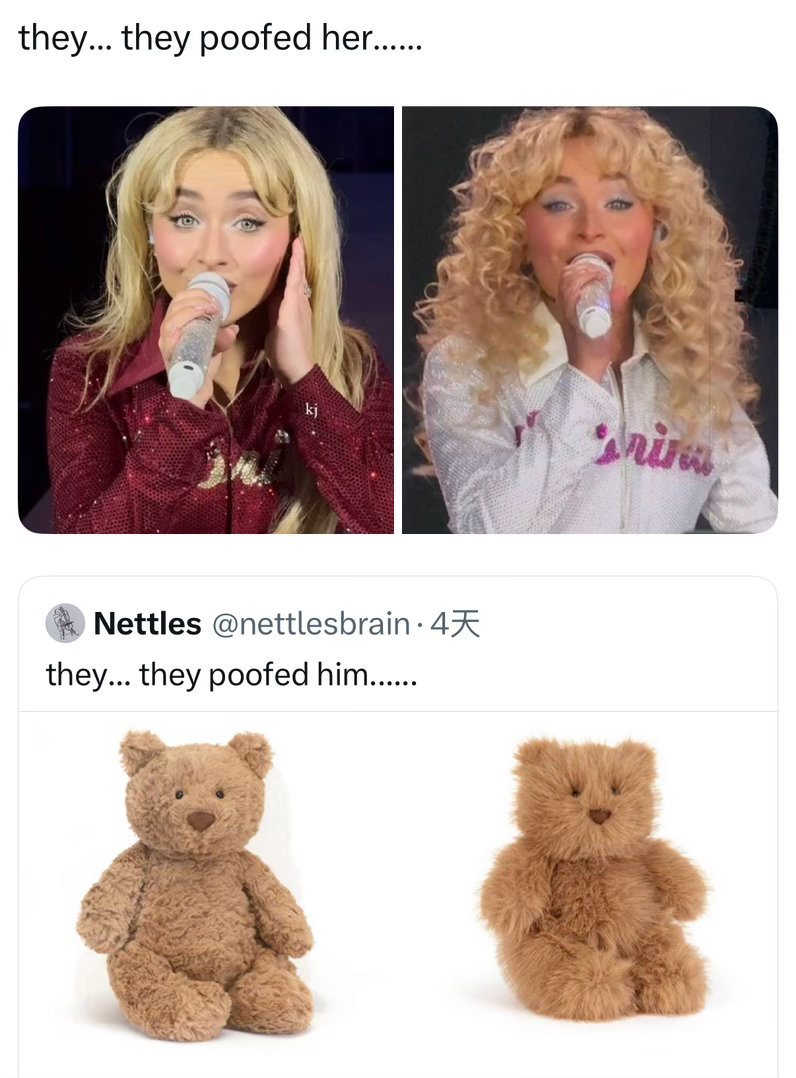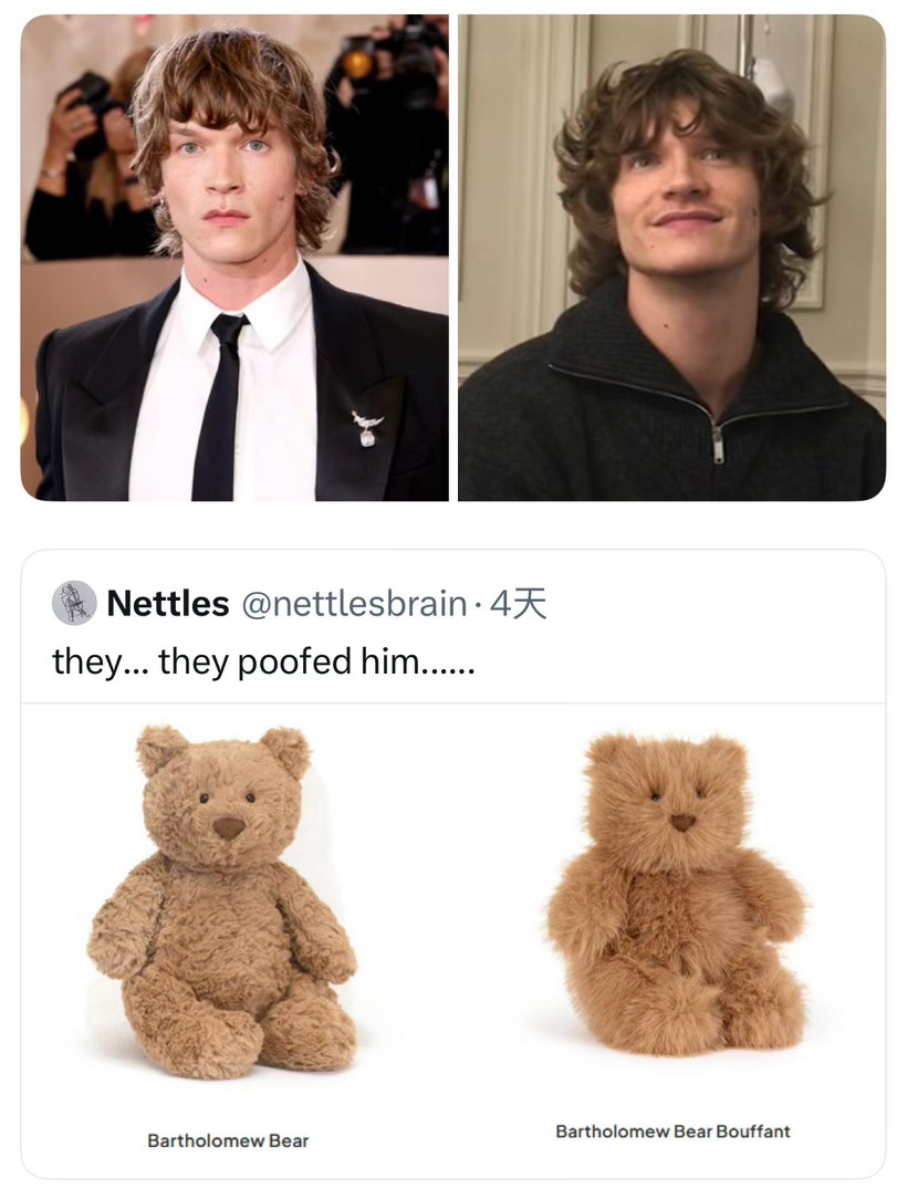 毛绒玩具品牌Jellycat 经典巴塞罗熊经典款和蓬蓬款外网大火,网友们跟风玩梗🧸