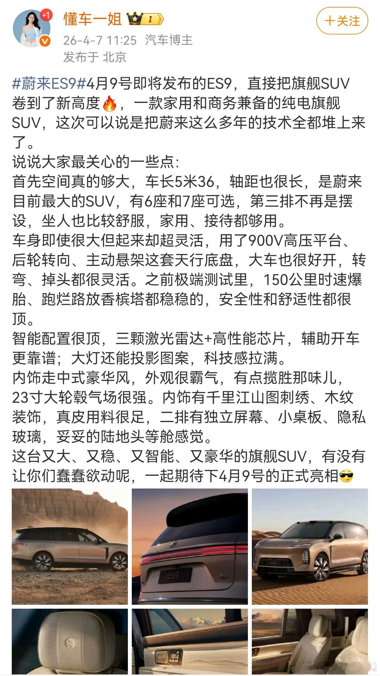 蔚来ES9宣传片媒体反馈第二波~蔚来汽车蔚来es9大局观观车