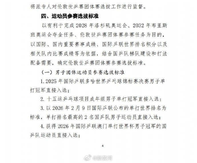 今天,中国乒协在官网公布了2026年国际乒联伦敦世界乒乓球团体锦标赛决赛参赛运动员名单。中国乒乓球协会依照《2026年国际乒联伦敦世界乒乓球团体锦标赛决赛选拔办法》,确定伦敦世乒赛团体赛参赛运动员名单如下: