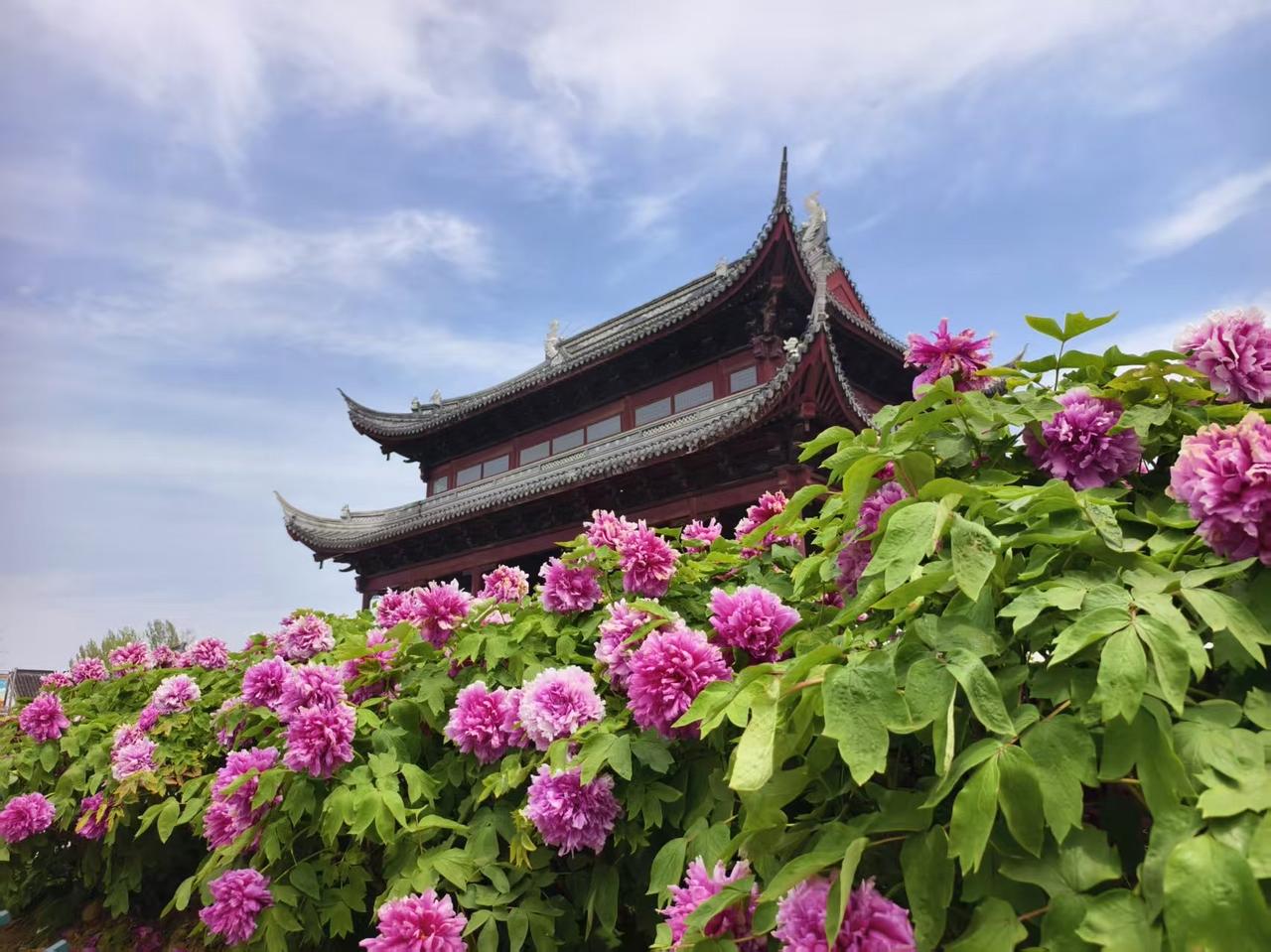 春日漫步汝南天中文化园,是一场古今之约。春日景致尽收眼底。牡丹园里千株竞放,粉霞裹紫,嫩蕊凝珠,花浪翻涌,香盈满袖。春风微拂,日潭与月潭波光粼粼,倒映着天光云影,亭台水榭掩映在绿树繁花间,清雅幽静。