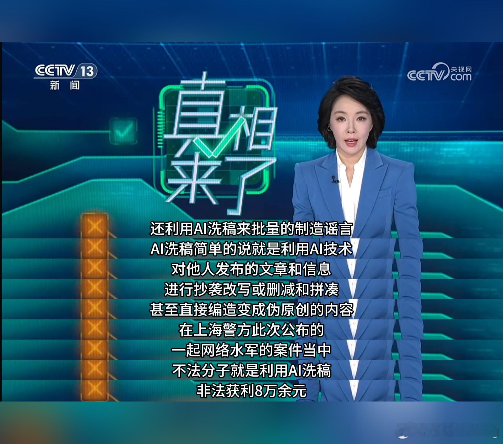 小米等车企遭AI造谣抹黑央视有一次报道了汽车行业的黑公关乱象,这次重点在一些人用AI大规模造谣和洗稿。过去需要庞大组织和人力才能造出的舆论攻势,现在一两个人借助AI就能搞出来了,确实有点恐怖的。