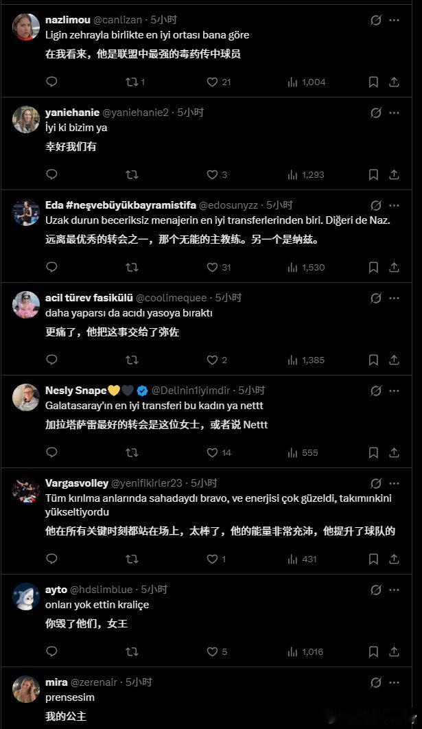 欧联杯夺冠后,土耳其球迷对王媛媛的称赞!