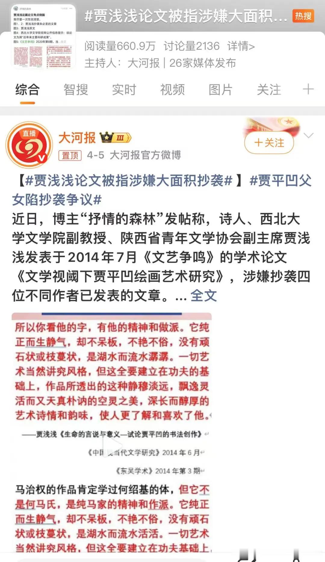 数十家机构媒体报道了这个丑闻,但贾浅浅父女和她所供职的西北大学,还在装聋作哑。贾浅浅抄袭风波涉事方集体沉默贾浅浅被指论文抄袭涉事方集体沉默贾浅浅贾平凹暂未回应抄袭争议贾浅浅被指抄袭四位不同作者文章