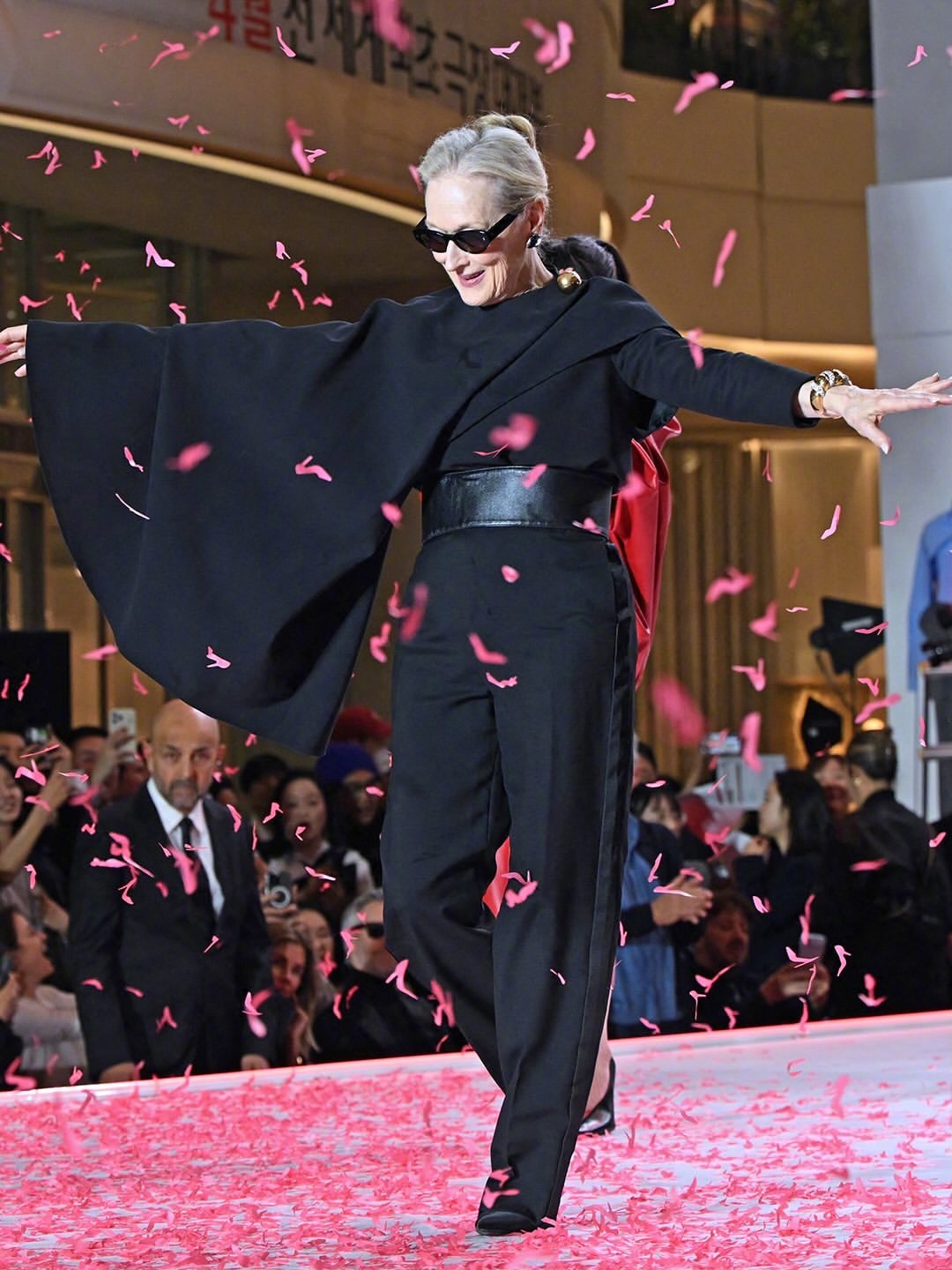 《穿普拉达的女王2》韩国红毯活动,两位主演梅丽尔·斯特里普和安妮.海瑟薇一黑一红