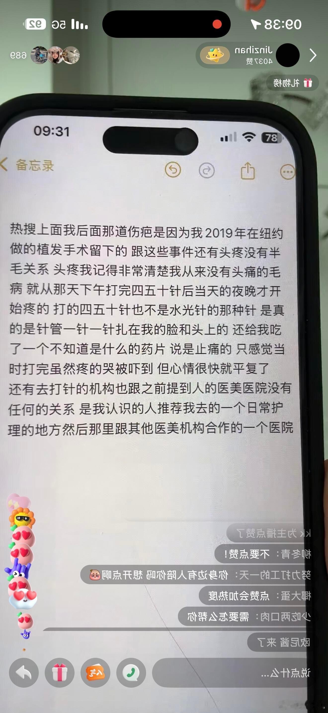 金子涵直播最新回应,跟秦岚没有关系,后脑勺的伤疤是植发手术留下的 金子涵否认是秦