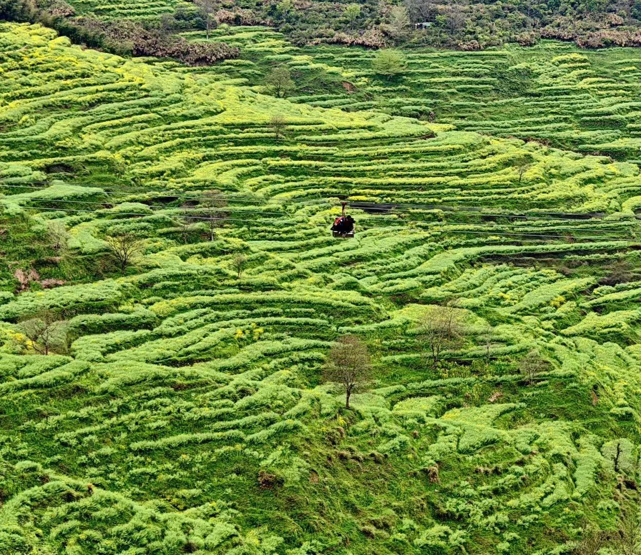2. 赴一场春日花海之约,在篁岭的梯田间穿行。漫山金黄铺展在山野间,游人穿梭在花径里,远山、古寺与花海相映成画,每一步都踩在春天的诗意里。