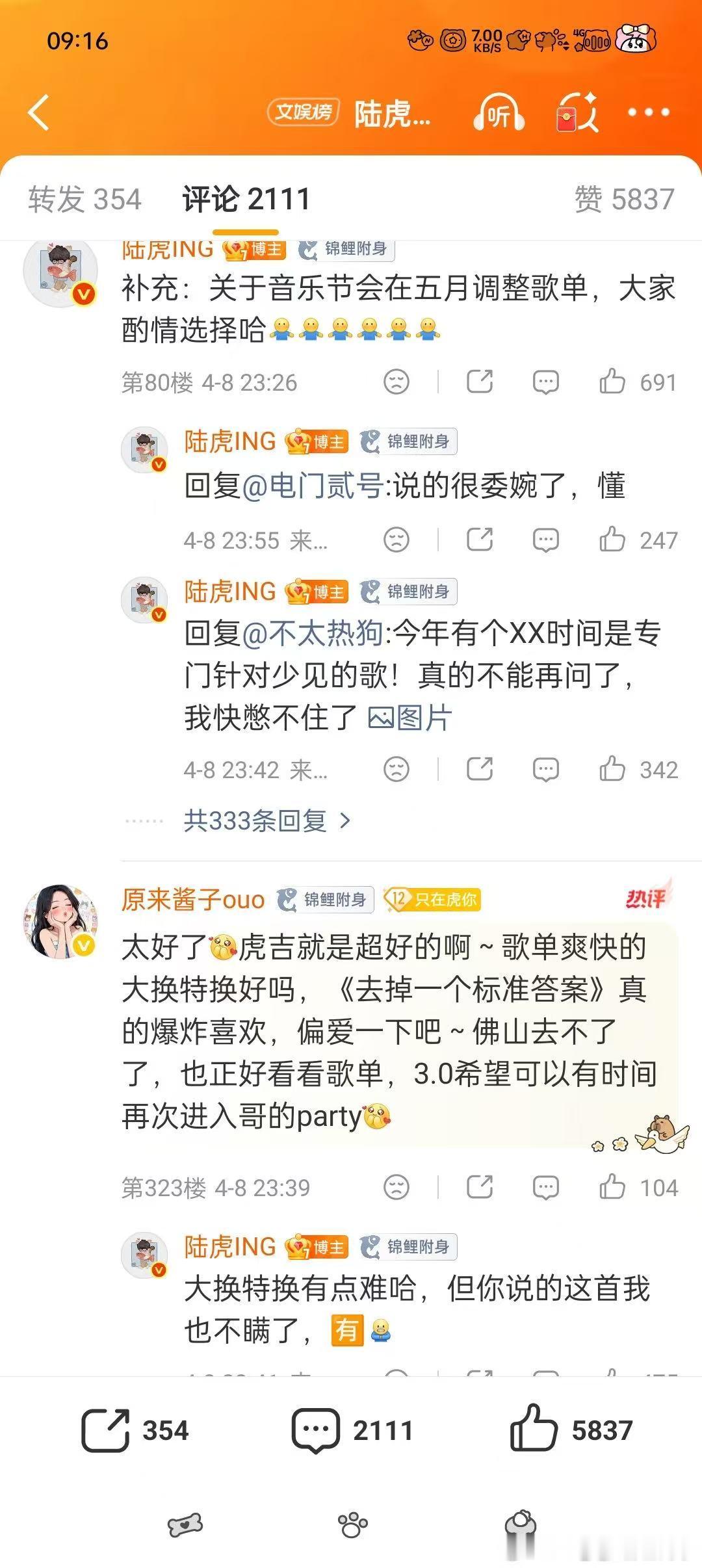 陆虎回应歌单 听到陆虎巡演3.0的消息直接激动,还是像你这样的朋友系列,生日开唱仪式感拉满,已经坐等现场了