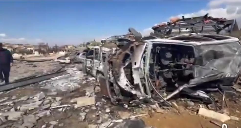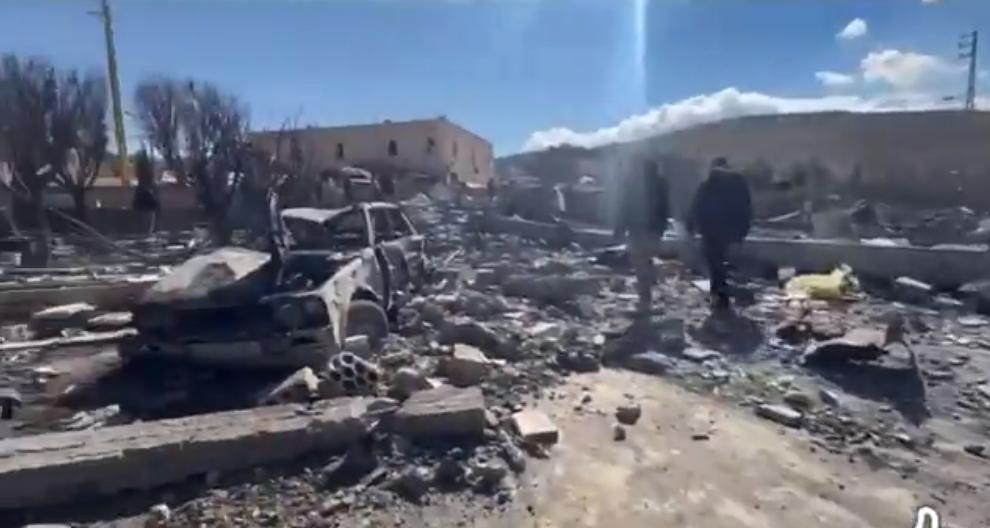 图片包括一张原本墓地的照片,照片中可以看到鲜花;以及一段13秒的视频,视频中可以看到被毁的汽车、散落的碎片、翻倒的墓碑,以及人们在似乎是被袭击的墓地区域内艰难穿行。