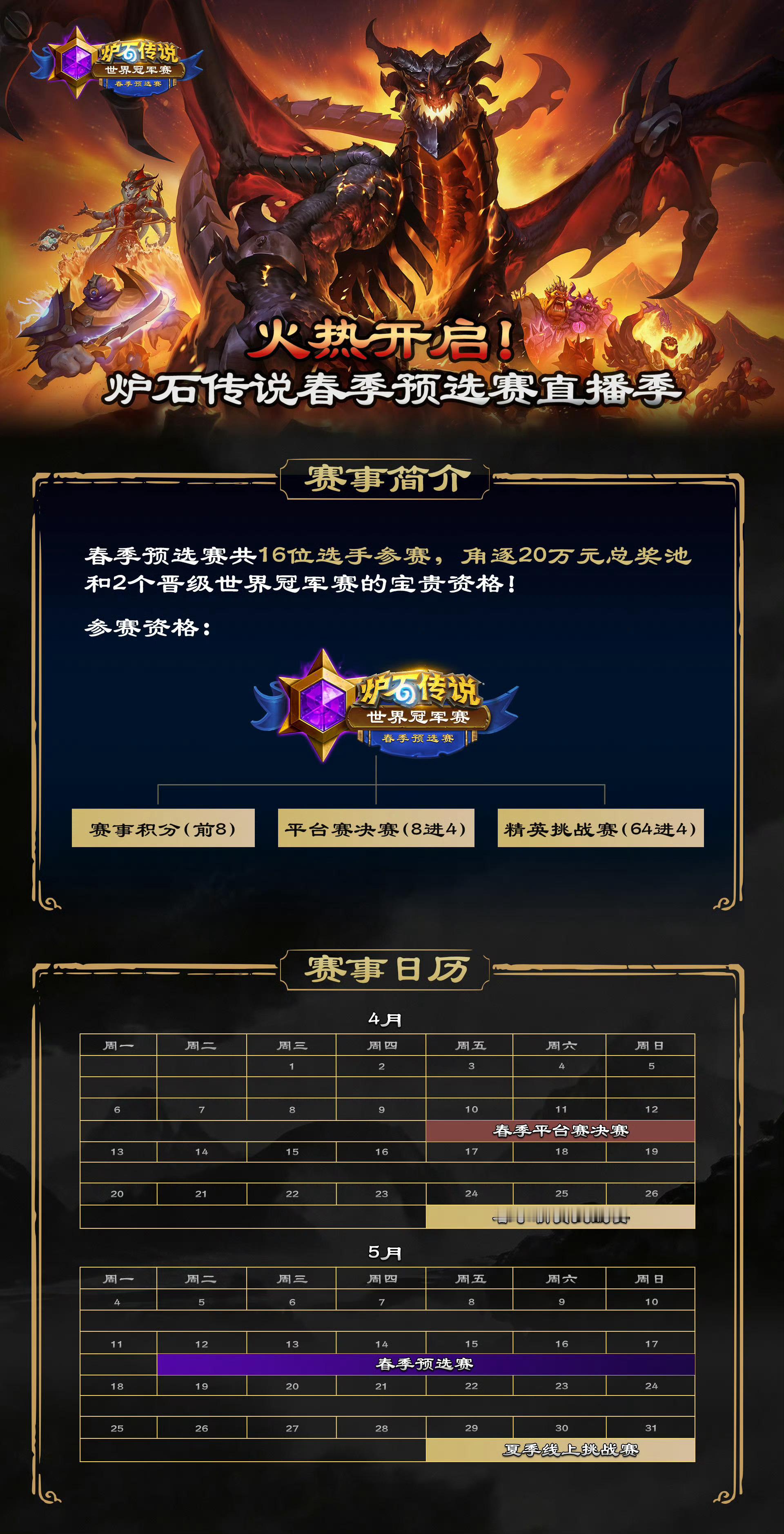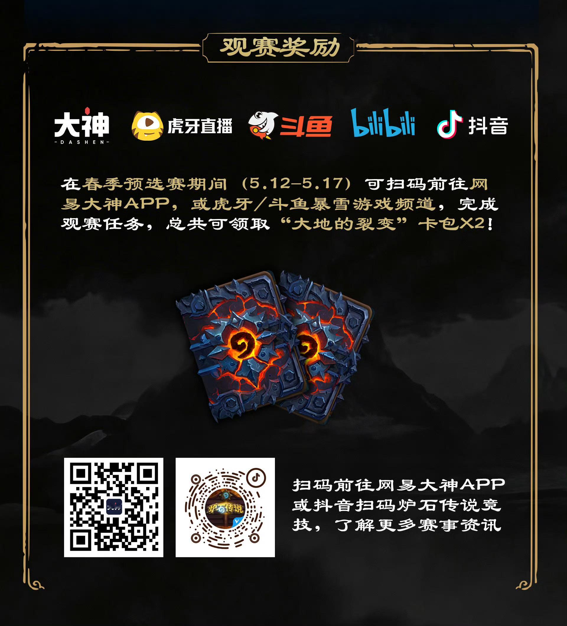 炉石传说 又有比赛看了!炉石国服2026春季平台赛决赛4月10日-12日开战,16位选手争夺4个晋级春季预选赛的名额。在卡组方面,三件套:法术瞎、兆示贼、龙战,此外龙德最近也多了起来!你看好谁最终夺冠?