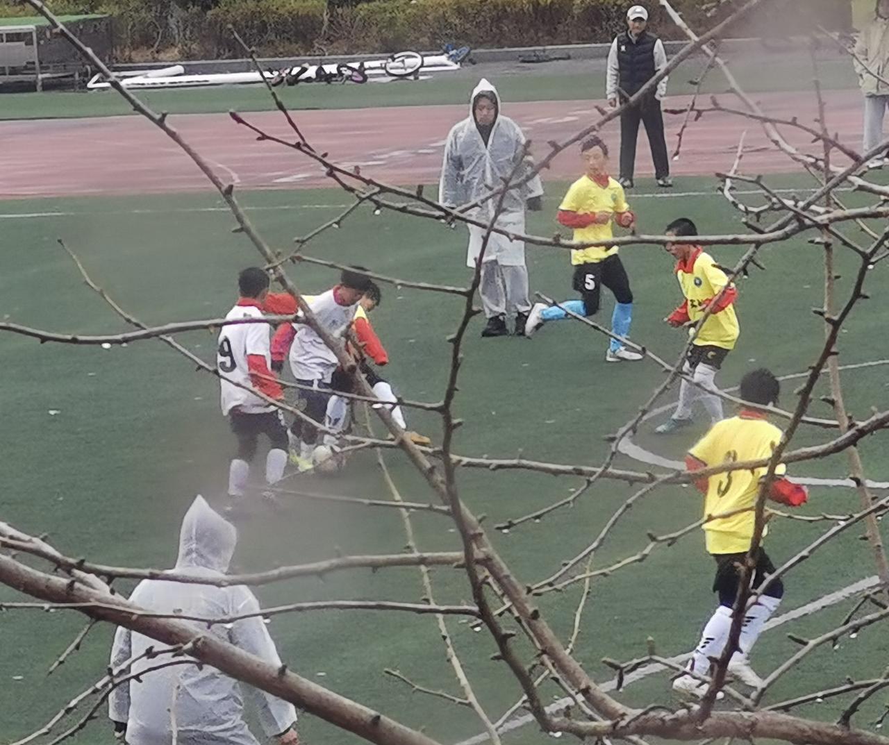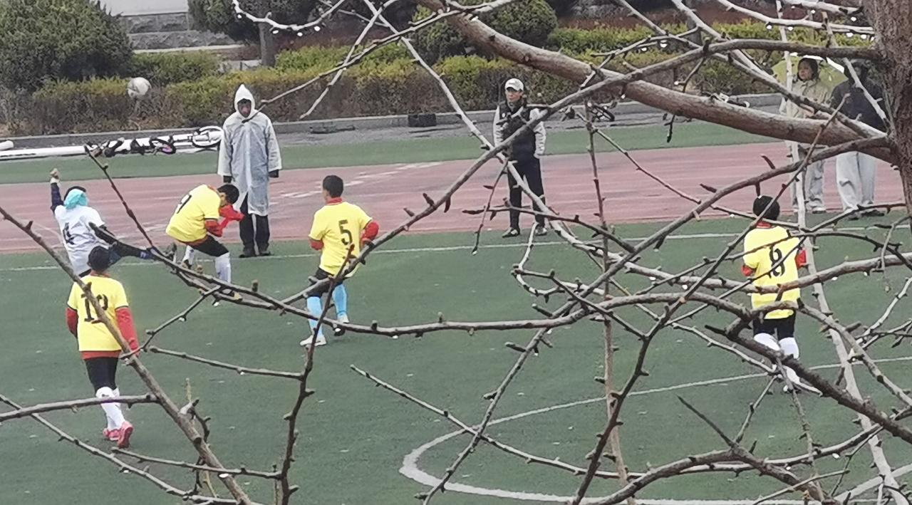 濛濛春雨中,我家门前一所小学的绿茵场上,“市长杯”小学生足球赛踢的正欢。我站在窗前,欣赏着孩子们在冒雨踢球。透过刚绽出嫩蕾的白杨树的缝隙,我看到孩子们在不知疲倦的奔跑,将跳跃的足球追逐。他们踢球的样子,多像一群觅食的鸟儿;欢快的叫声,恰似鸟儿的啁啾。虽是早春四月,但雨的沁凉依然让人感到阴冷,孩子们却因对足球的热情与爱,把自己变成盛开的花朵和葱郁的小草……
