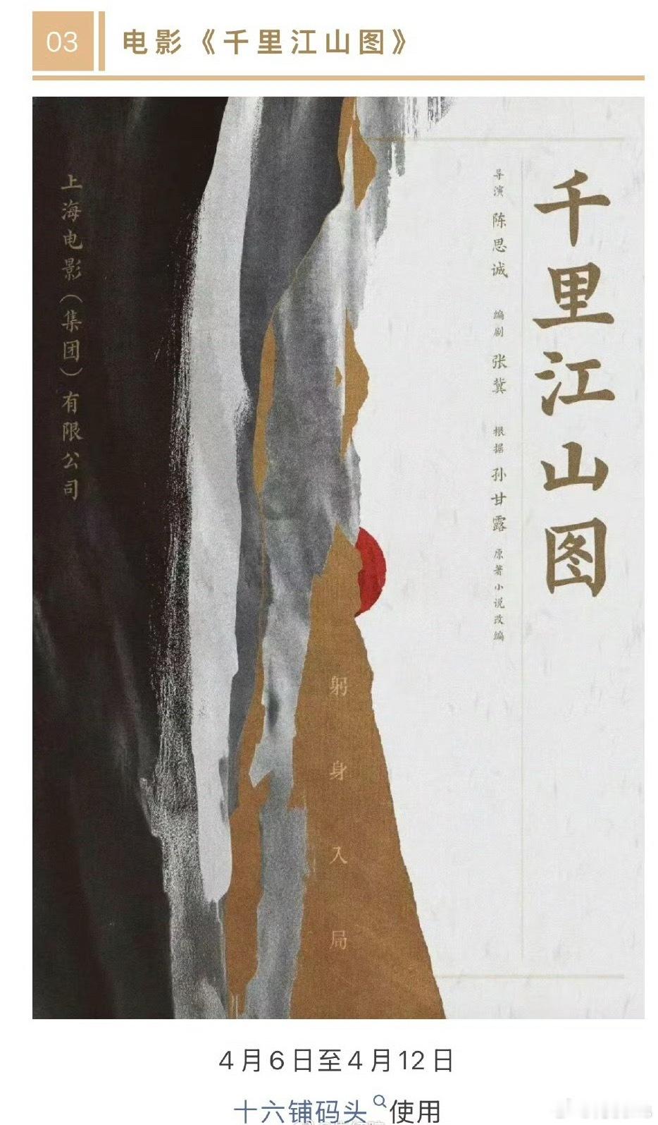 电影《千里江山图》开始置景了4.6-4.12,看来马上要开机了编剧:张冀,导演: