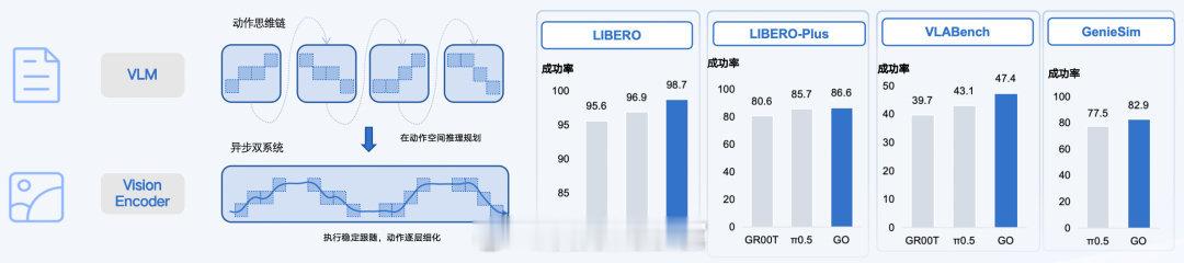 该模型首创“动作思维链”与“异步双系统”架构,让机器人能在动作空间直接推理规划并稳定执行,在多项基准测试中刷新 SOTA。