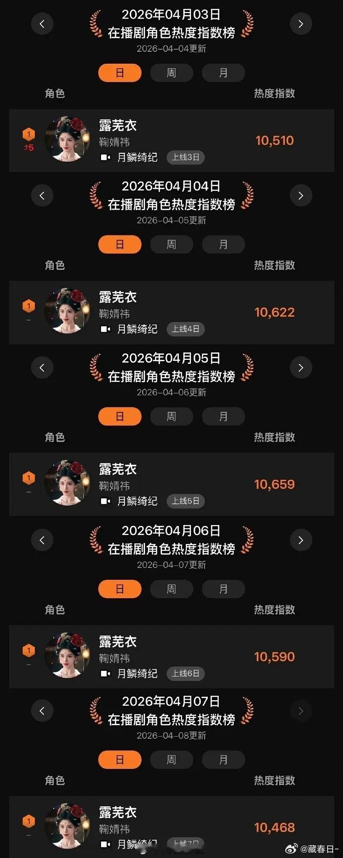 鞠婧祎的露芜衣连续五天断层拿下欢网角色热度第一,这次是真出圈了吧,好火啊!