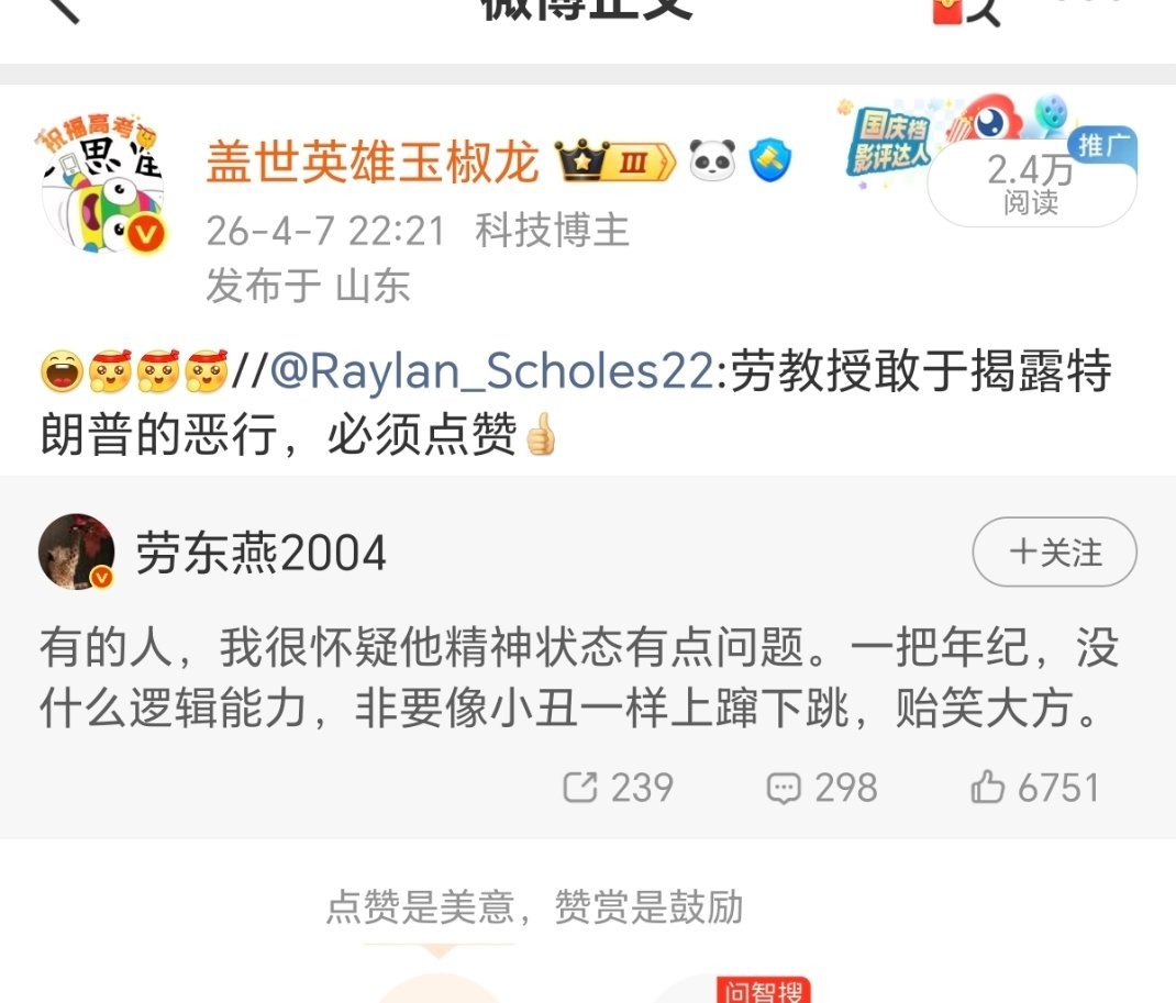 好不容易同意劳大教授一回,赞成她批判特朗普,她咋删了
