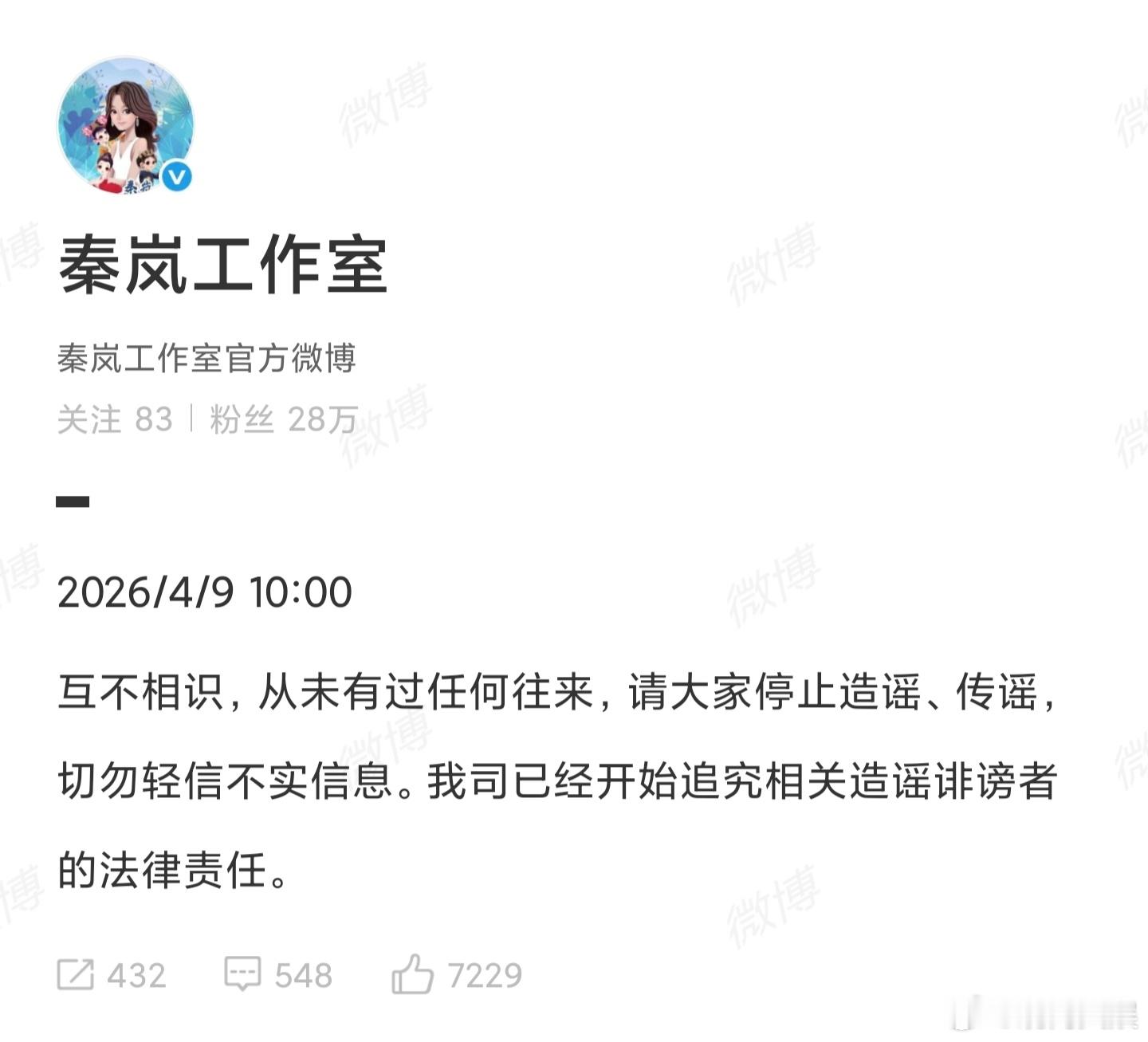 4月9日上午10点,否认谣言,称与金子涵“互不相识,从未有过任何来往,请大家停止造谣、传谣,切勿轻信不实信息。”