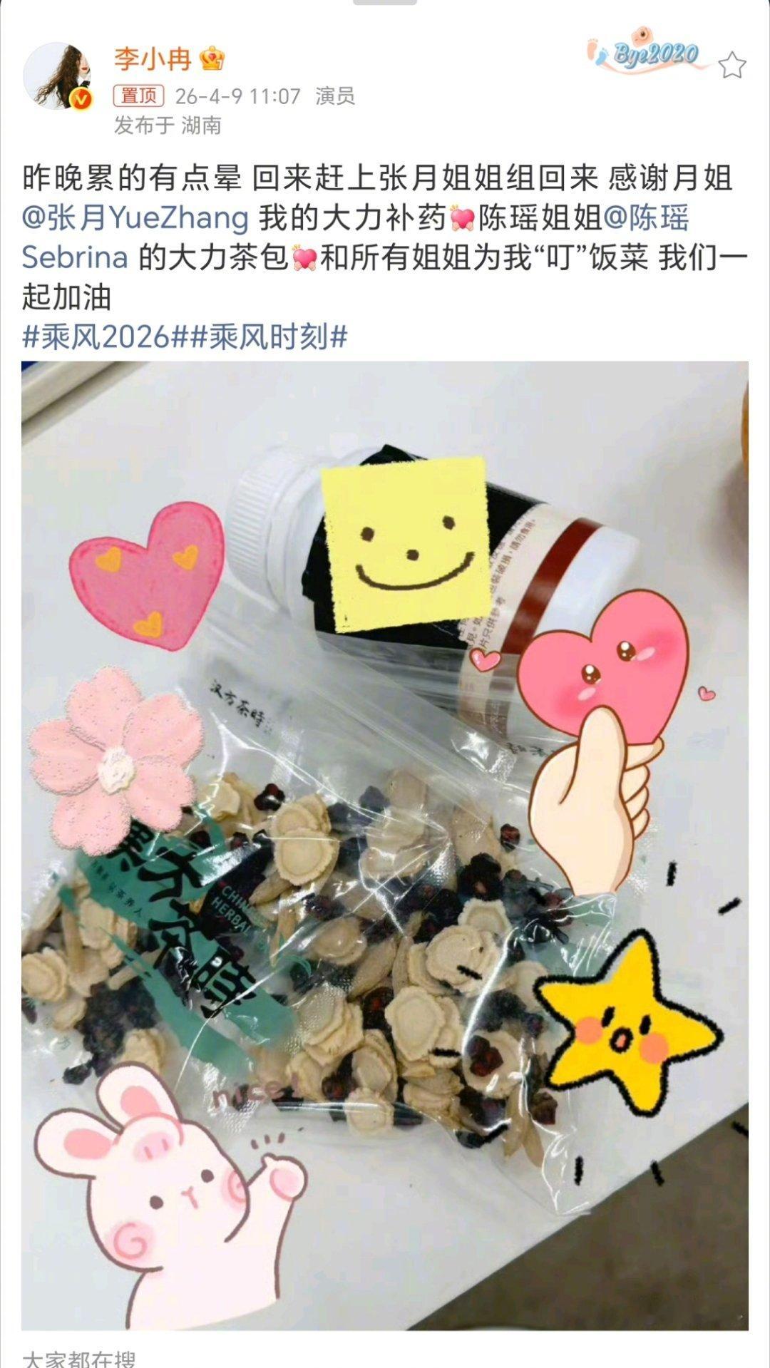 张月陈瑶浪姐补给包乘风2026 张月和陈瑶也太暖心了吧!还给李小冉准备了补给包,又是补药又是养生茶,姐妹俩温柔又贴心