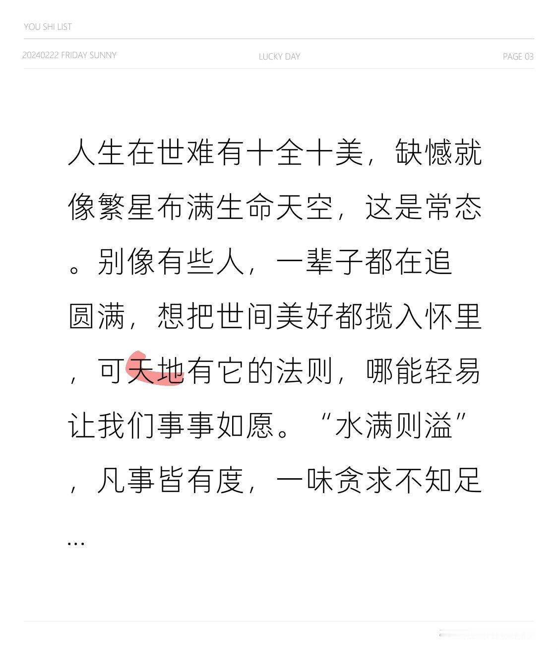 人生在世难有十全十美,缺憾就像繁星布满生命天空,这是常态。别像有些人,一辈子都在追圆满,想把世间美好都揽入怀里,可天地有它的法则,哪能轻易让我们事事如愿。