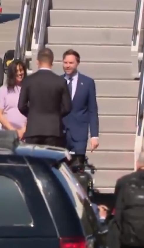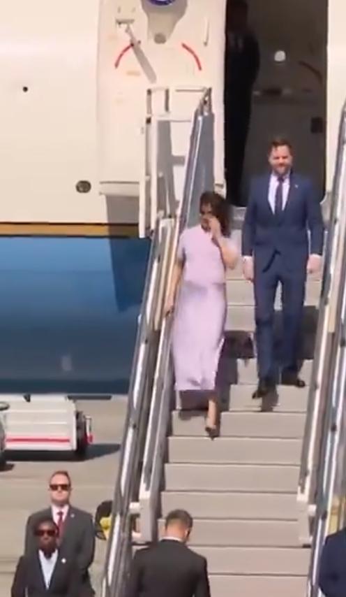 今天,怀孕的第二夫人乌莎·万斯与副总统约翰·迪·万斯抵达匈牙利布达佩斯,她轻抚着孕肚。