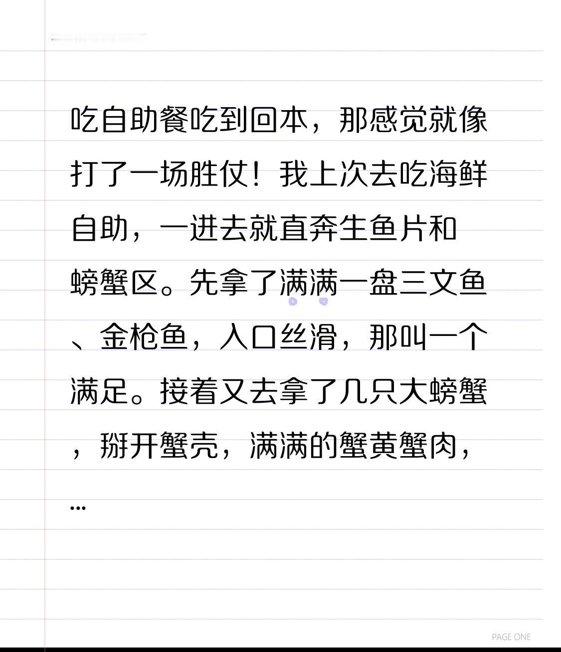 吃自助餐吃到回本,那感觉就像打了一场胜仗!我上次去吃海鲜自助,一进去就直奔生鱼片和螃蟹区。先拿了满满一盘三文鱼、金枪鱼,入口丝滑,那叫一个满足。接着又去拿了几只大螃蟹,掰开蟹壳,满满的蟹黄蟹肉,吃得超爽。