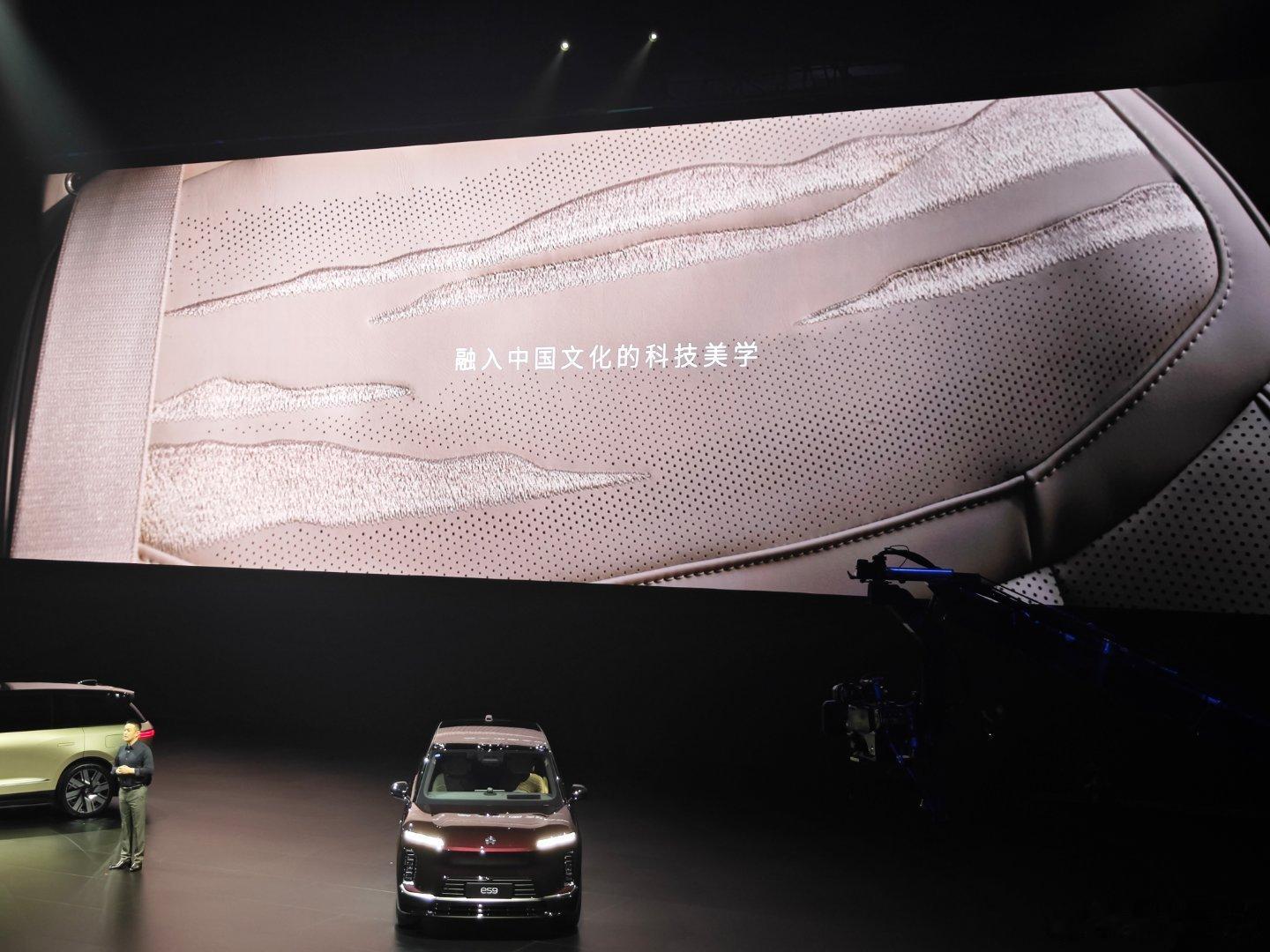 作为行政旗舰SUV,ES9对豪华的理解就是一点都不藏,超长镀铬饰条,超复杂灯组设计,超大光毯投影面积,等等等等,怎么大气怎么来。当然,还得融入一些中式豪华、山水意境。