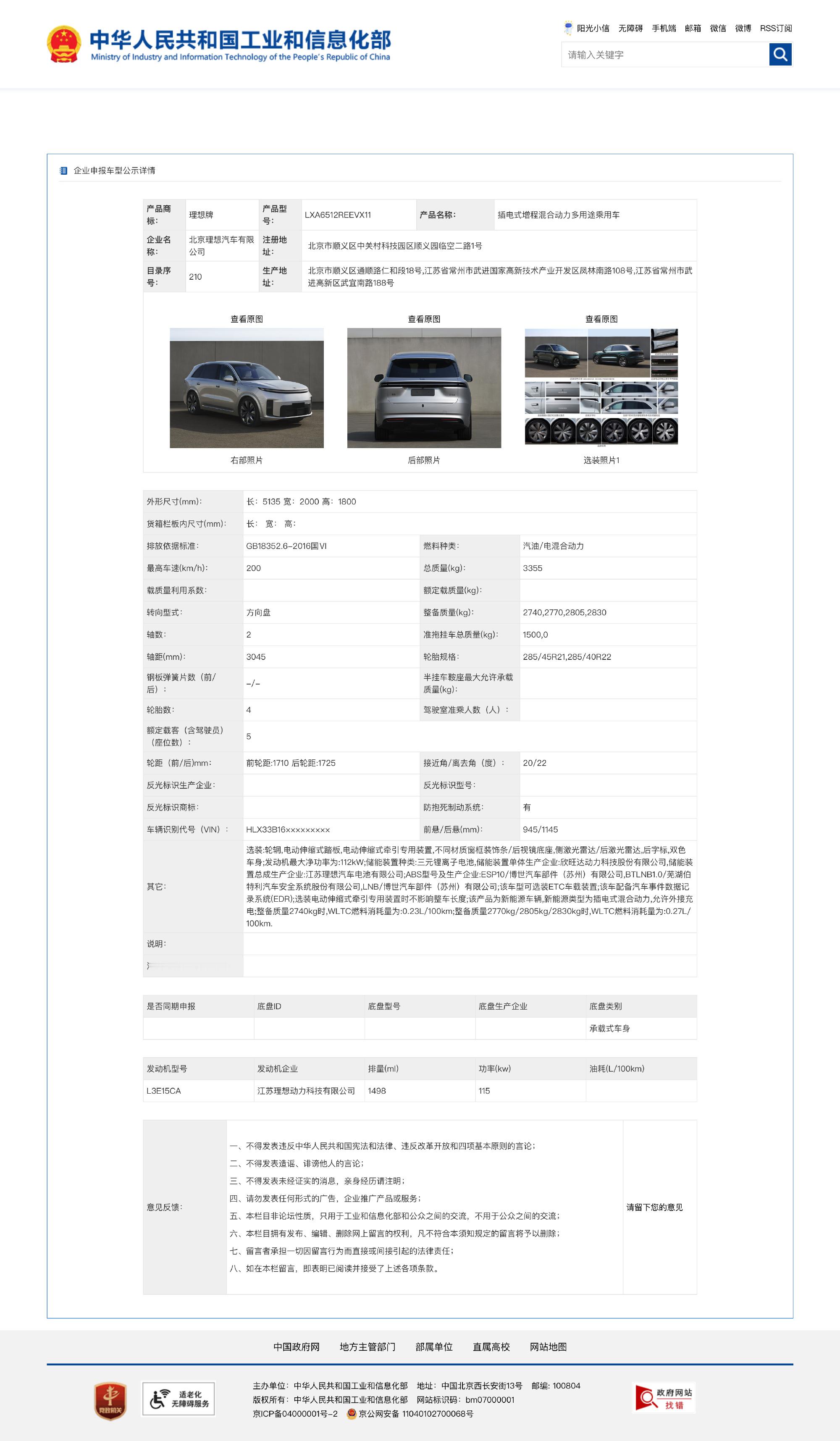 全新一代理想L8申报图,推出Livis版本。根据申报信息,新车定位由原先的家庭六