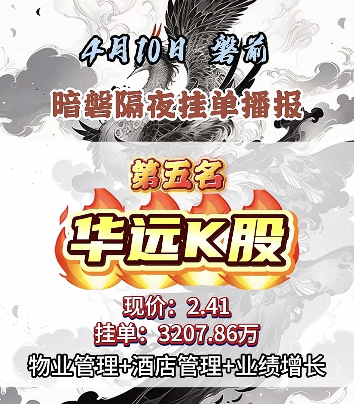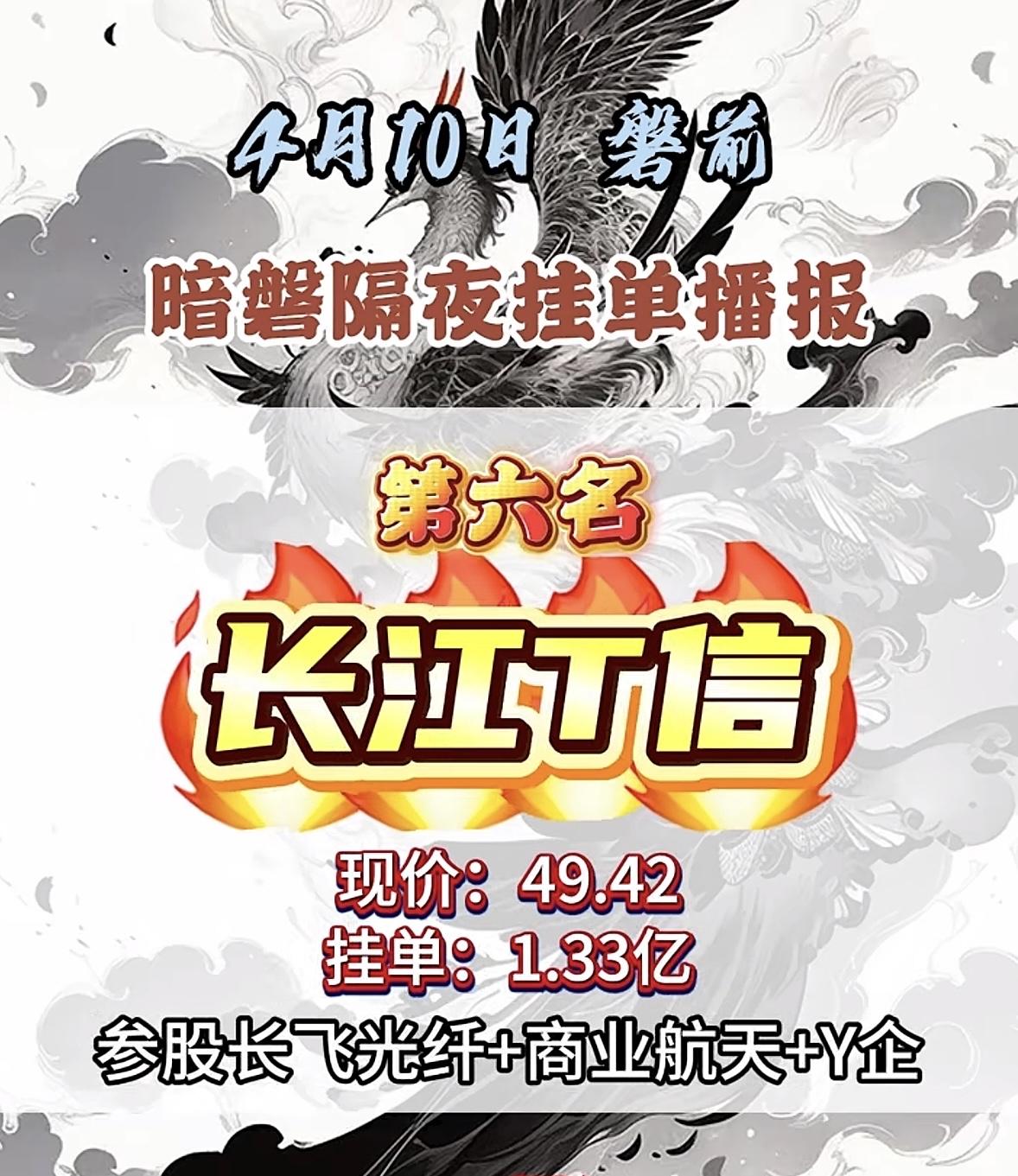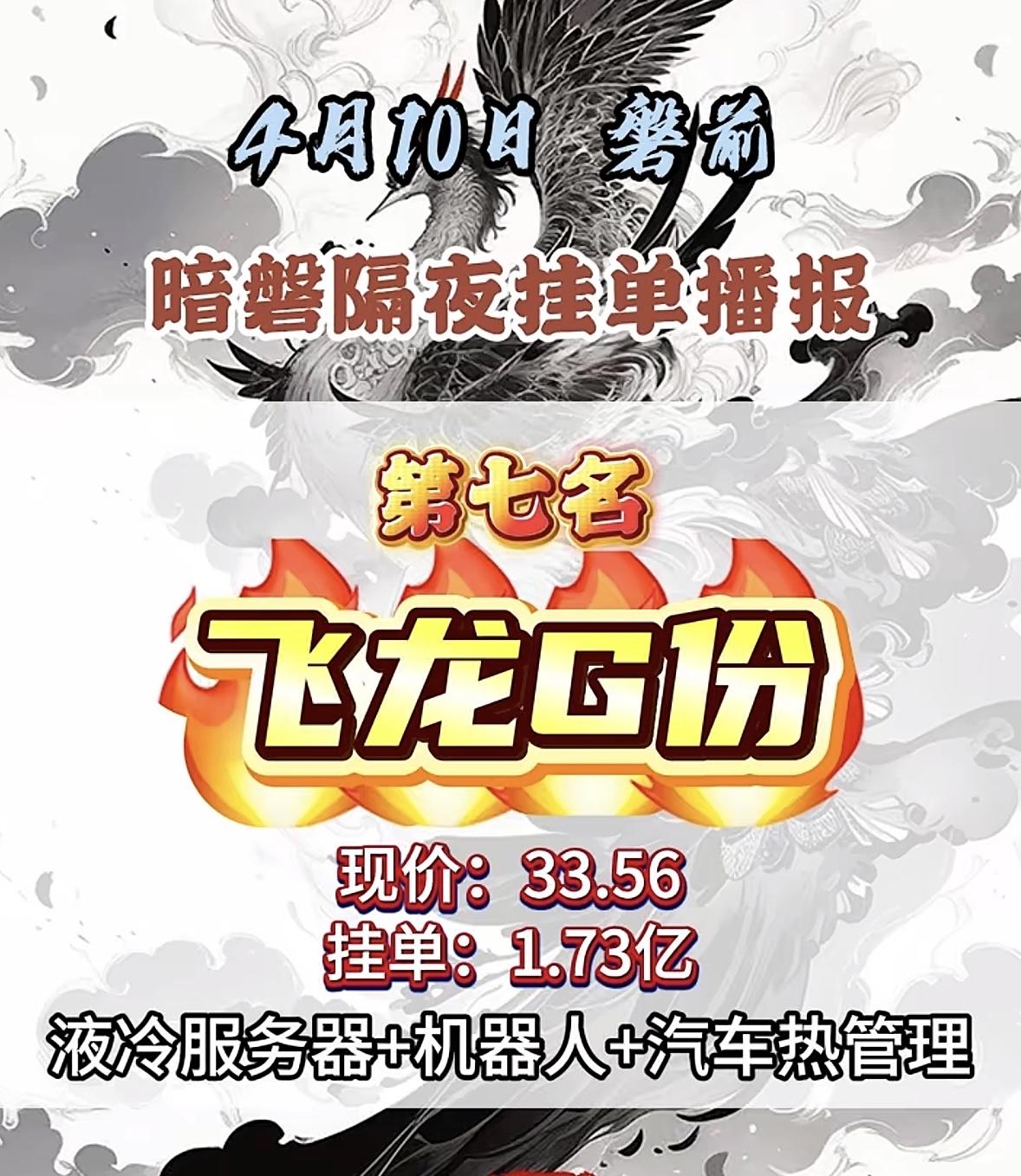 4月10日周五暗盘隔夜挂单排行榜出炉 暗盘隔夜挂单里,飞龙股份可太惹眼了!现价