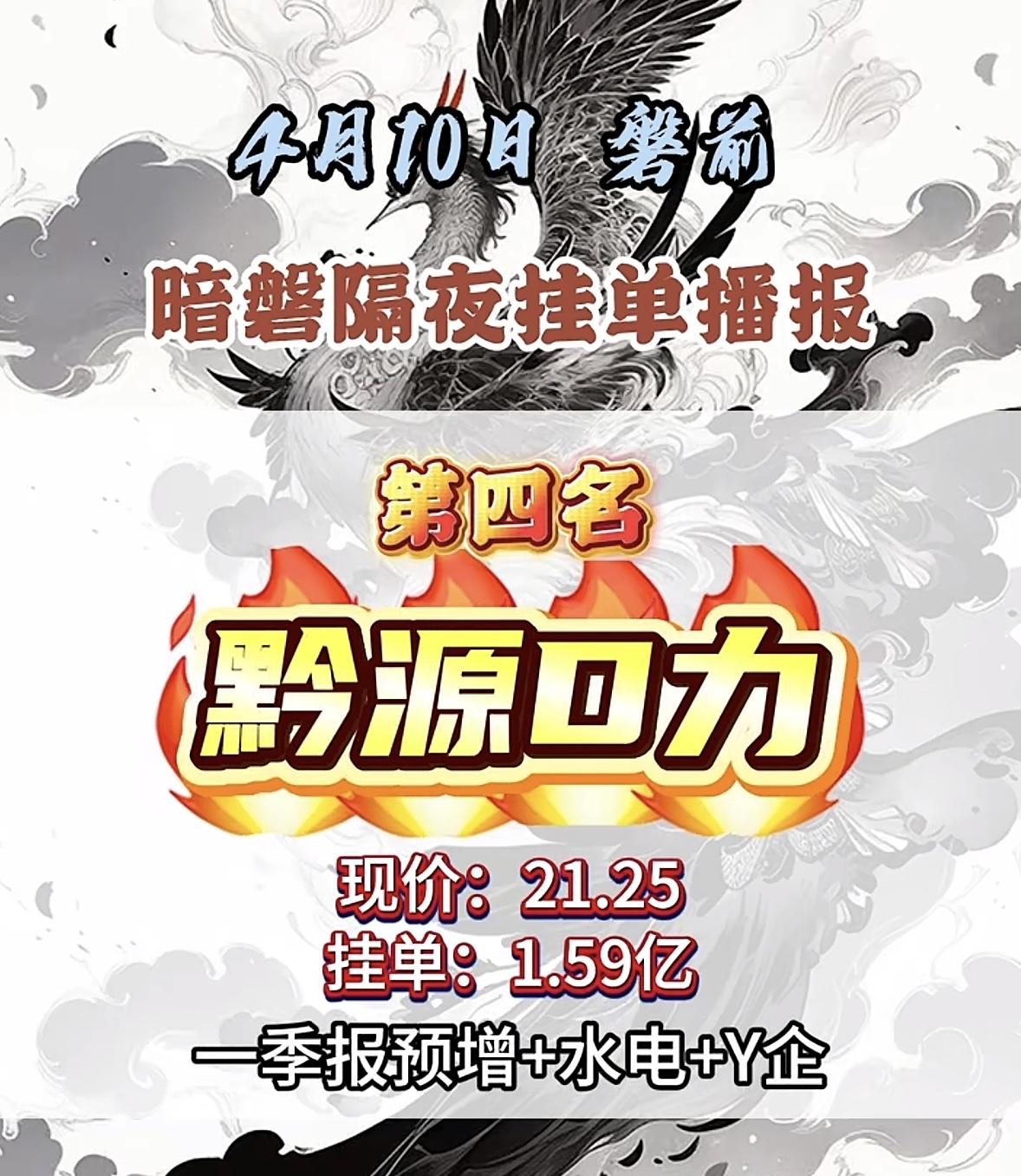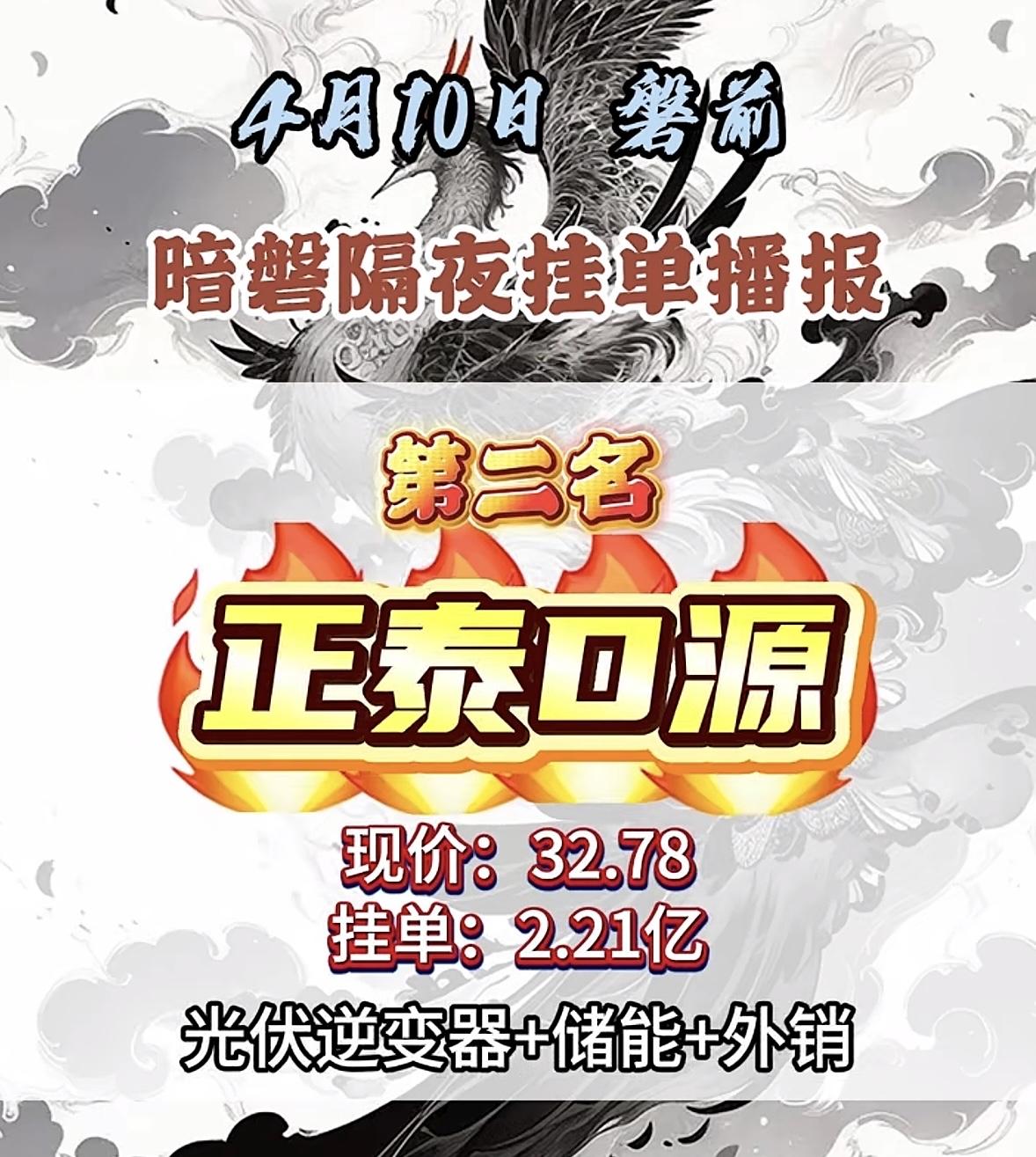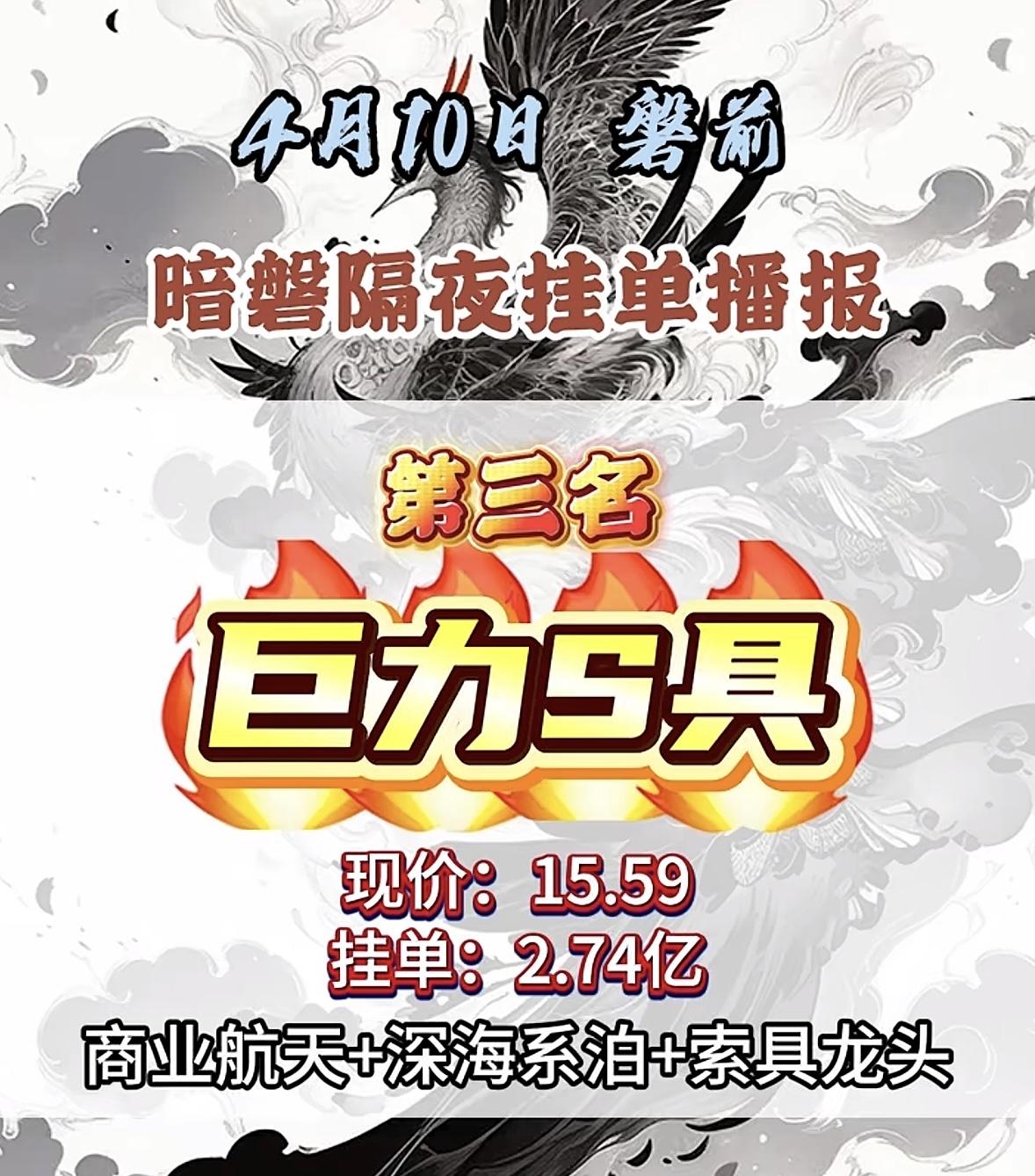 4月10日周五暗盘隔夜挂单排行榜出炉 暗盘隔夜挂单里,飞龙股份可太惹眼了!现价