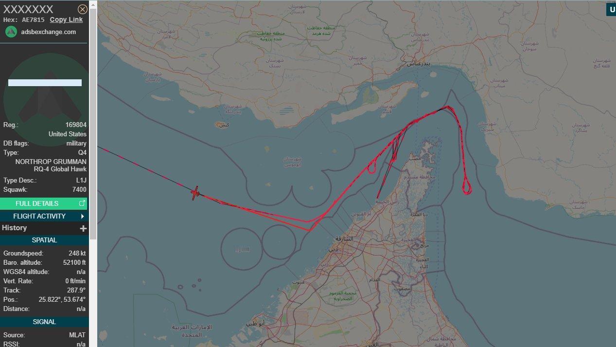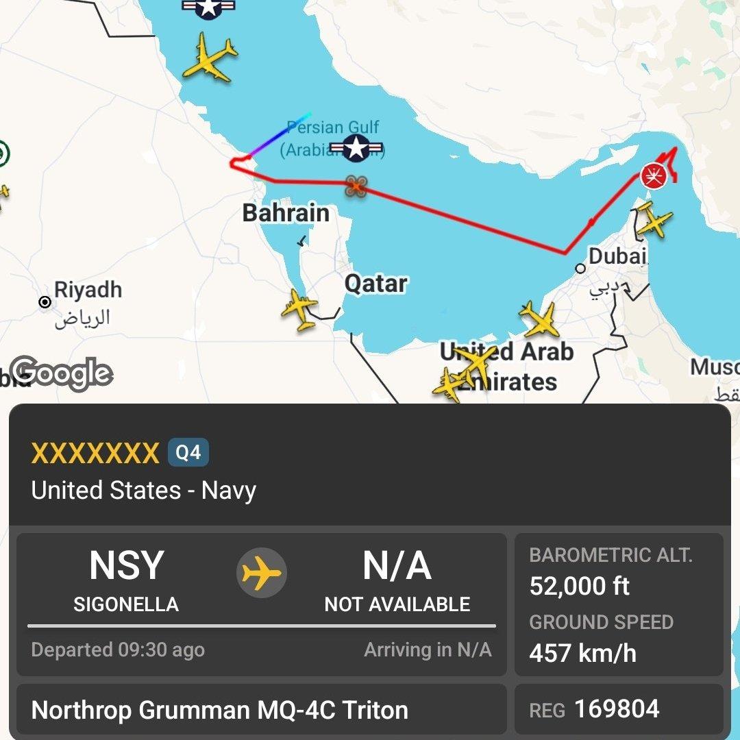 突发:驻扎在锡戈内拉海军航空站的传奇无人机169804,一架诺斯罗普·格鲁曼公司生产的MQ-4C“海神”无人机,似乎在几分钟前于波斯湾上空被伊朗防空部队击落。这架无人机曾参与战斗搜救(CSAR)任务,支援于2026年4月3日被击落的美国空军第494战斗机中队的F-15E“攻击鹰”战斗机。在接近伊朗阿萨鲁耶机场时被击落