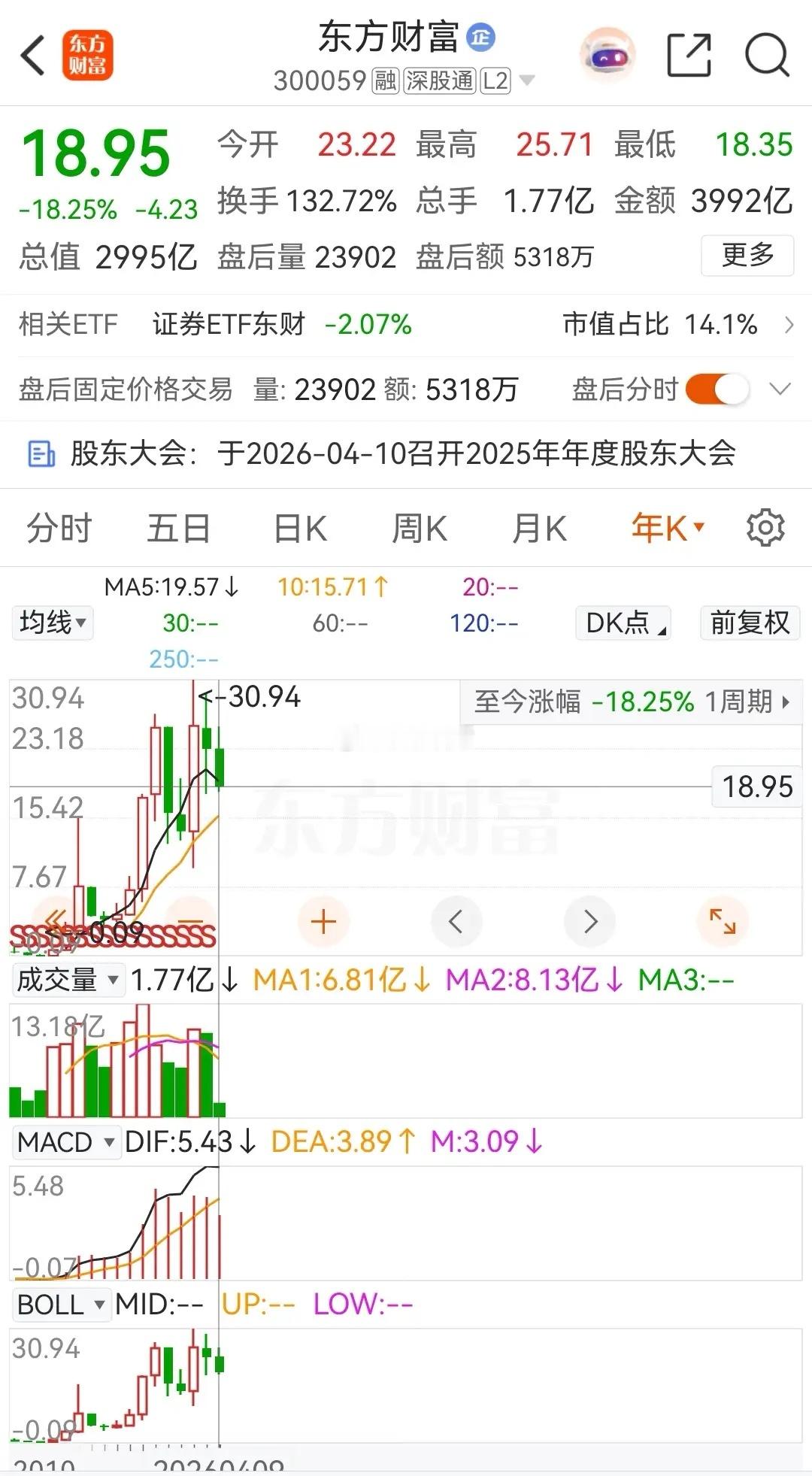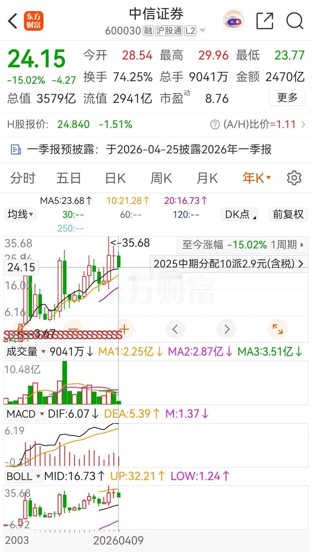 总之,对于券茅和券商一哥来说,业绩高增难阻跌势:2025年中信证券净利润同比增38.58%,东方财富增25.75%,但监管干预(如中信证券尾盘大单压盘调控指数)及减持压力(东方财富实控人套现92.4亿元)压制了股价的弹性。所以,想要入场操作,就得做好持久战和亏损的心理准备!