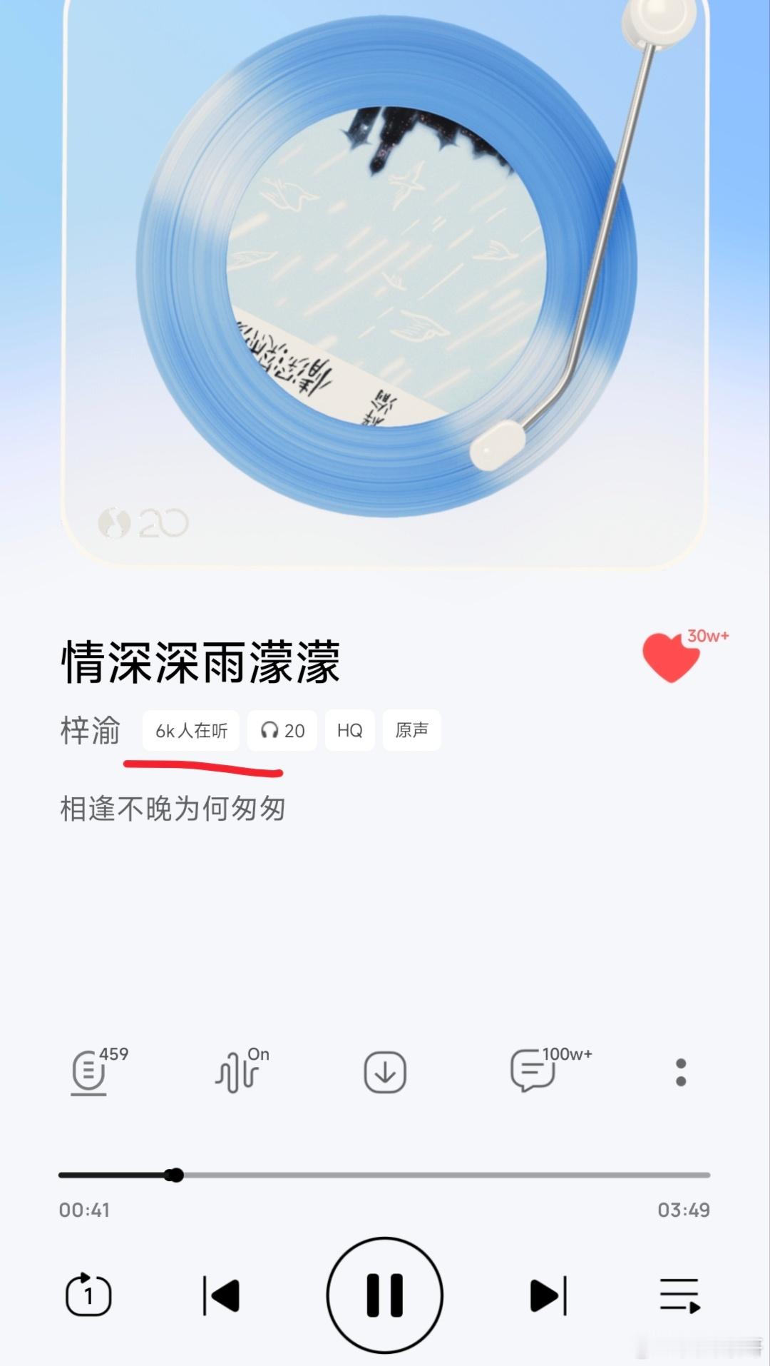 梓渝的情深深雨濛濛在巅峰潮流榜已经七日连冠了,且大半夜的还有6000人同时在听作为一位新新生代歌手,有这个成绩真的太难得了