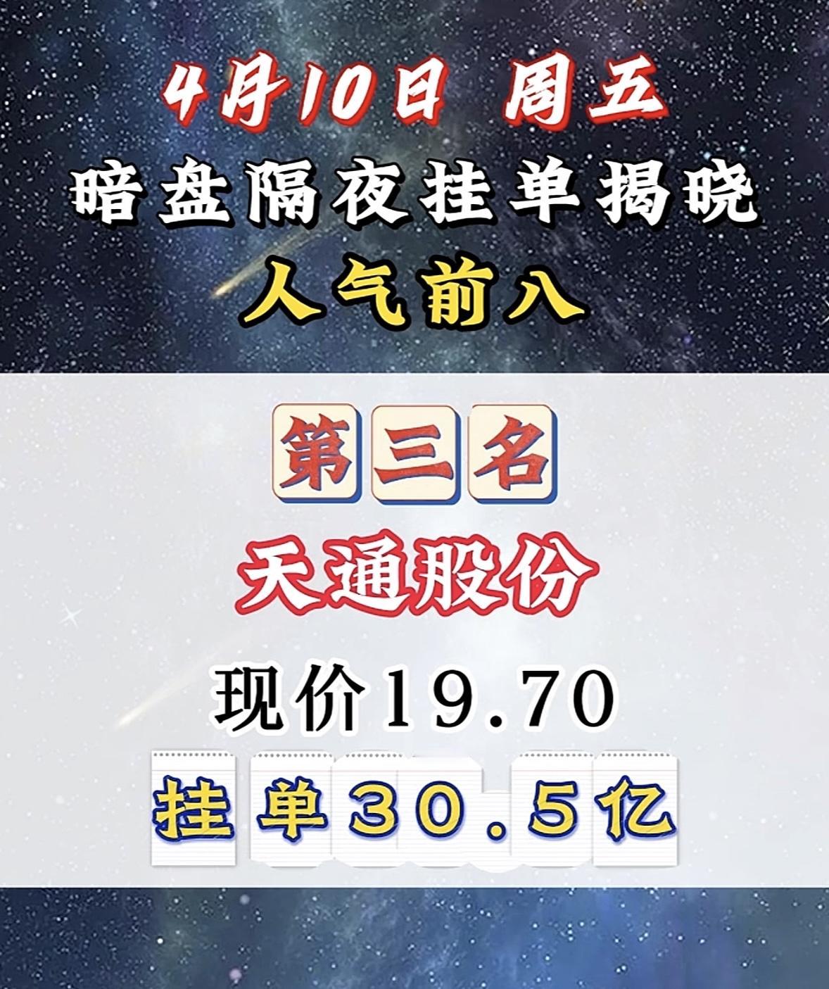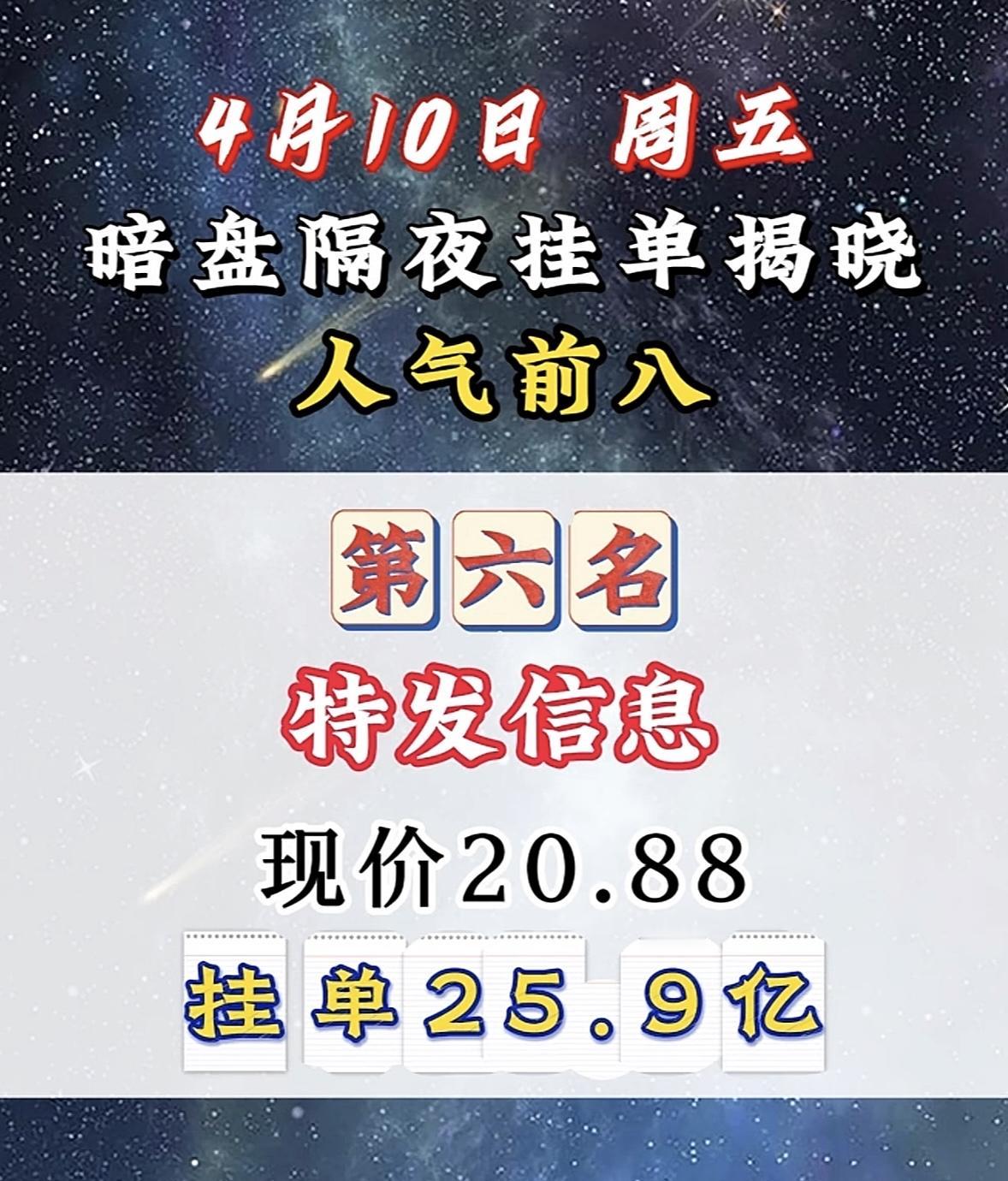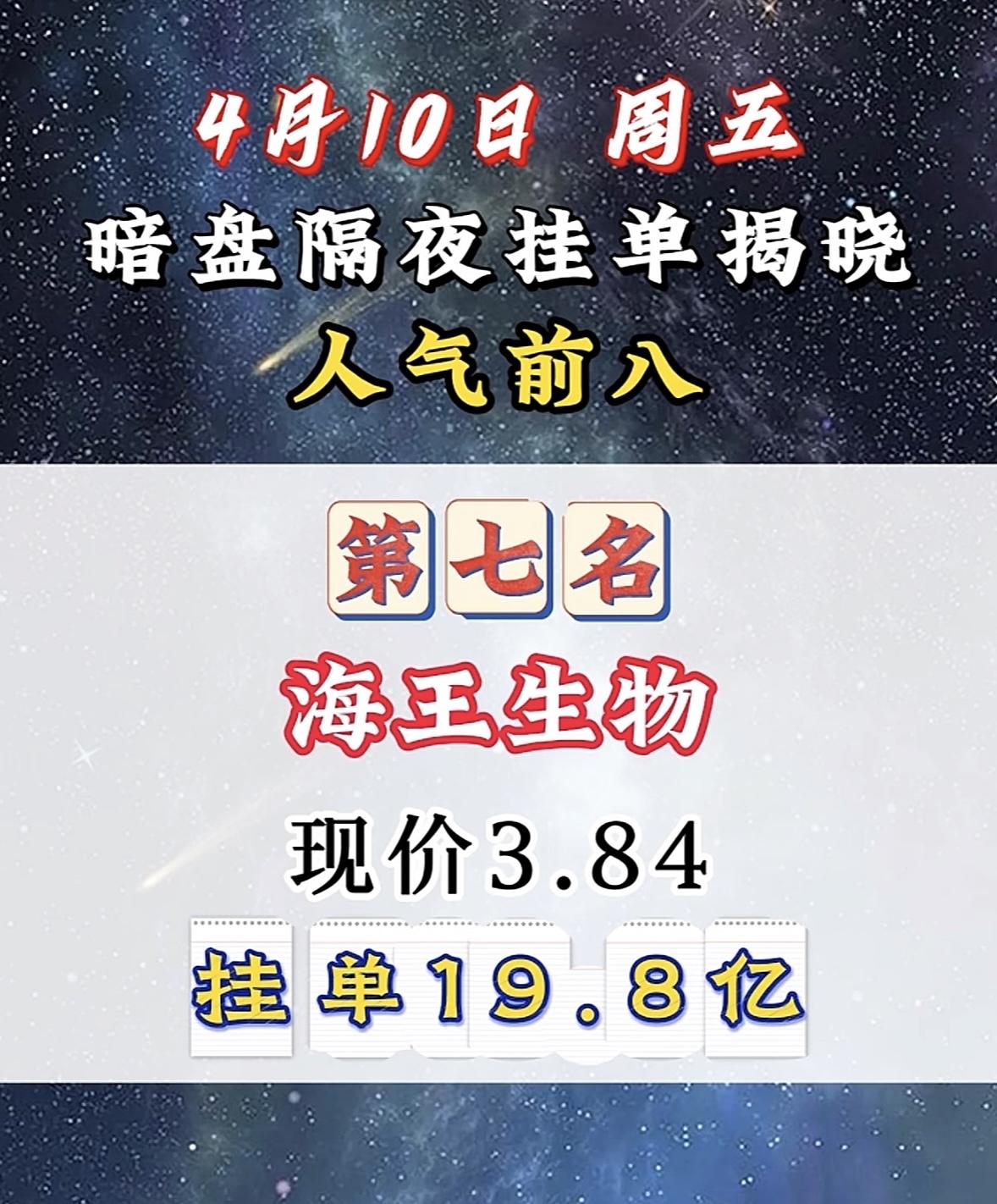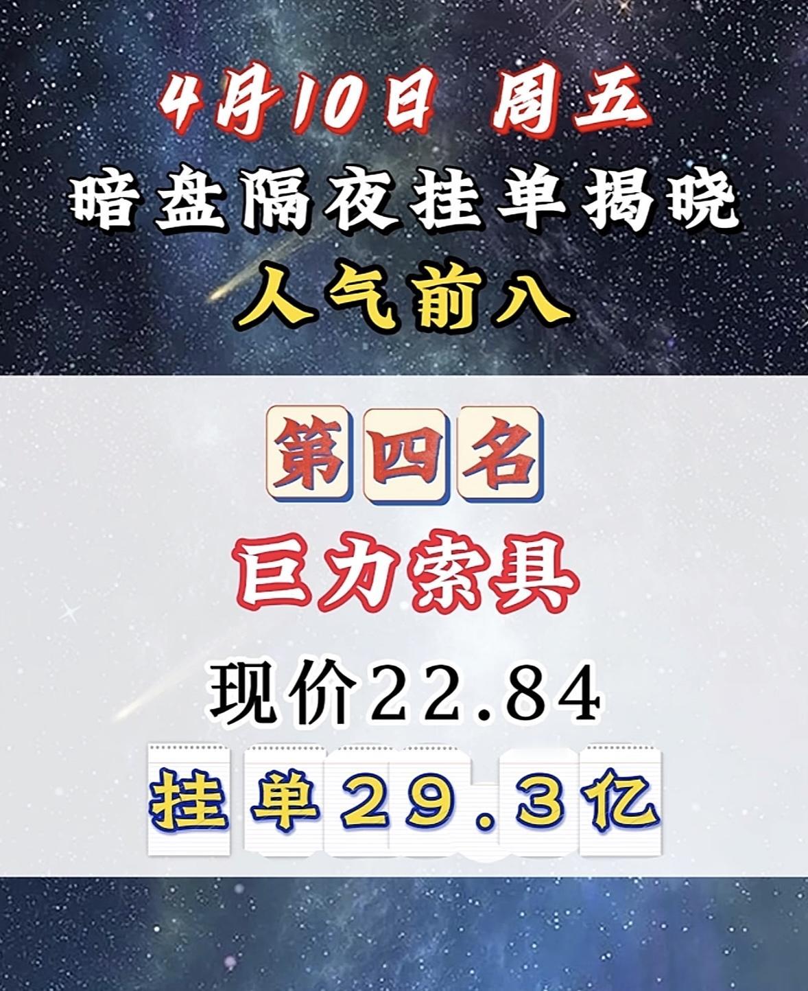 4月10日周五暗盘隔夜挂单排行榜出炉
