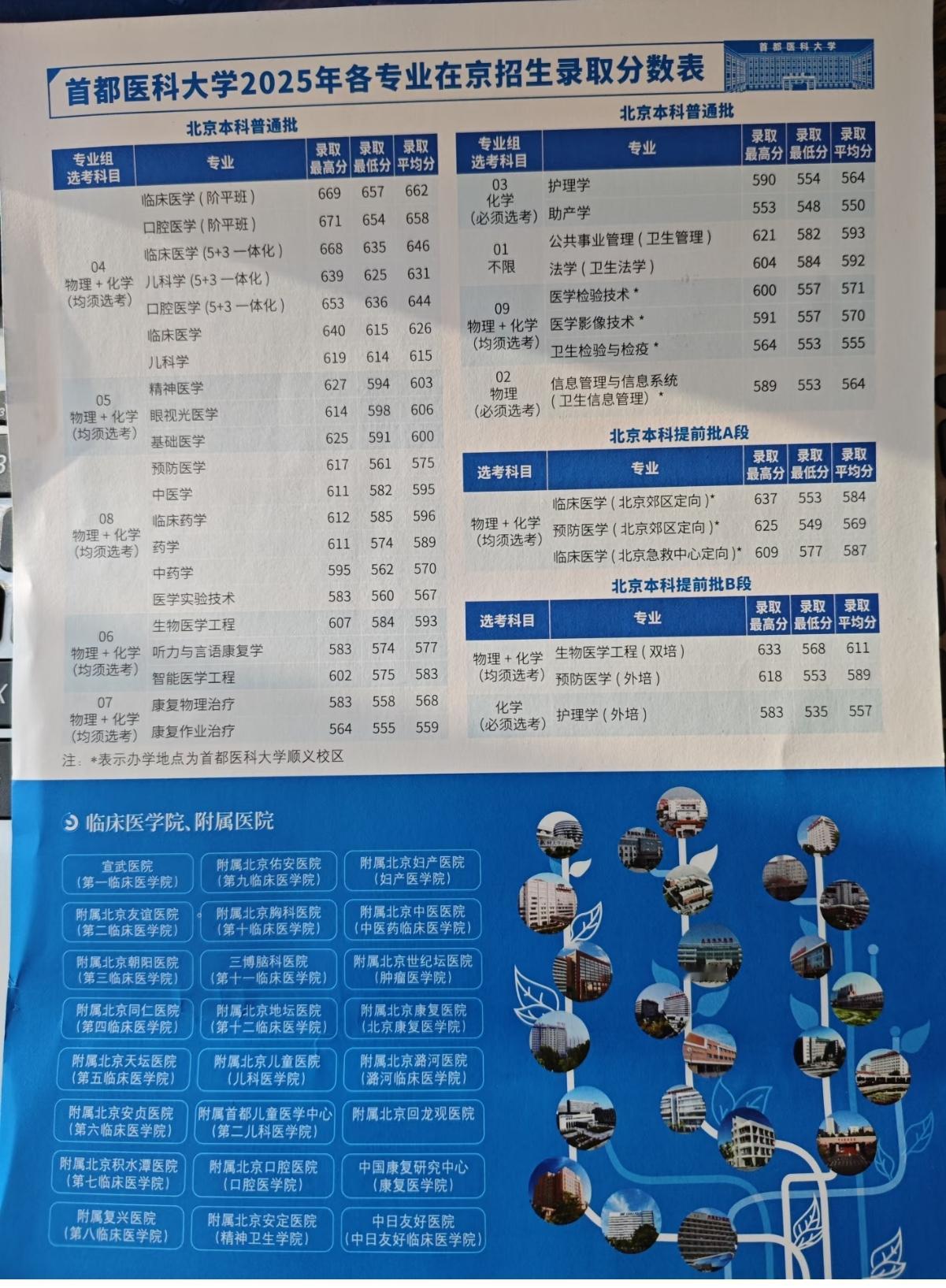 首医今年高考录取分数会下降吗?从近两年(2024-2025)首医在京录取数据看,
