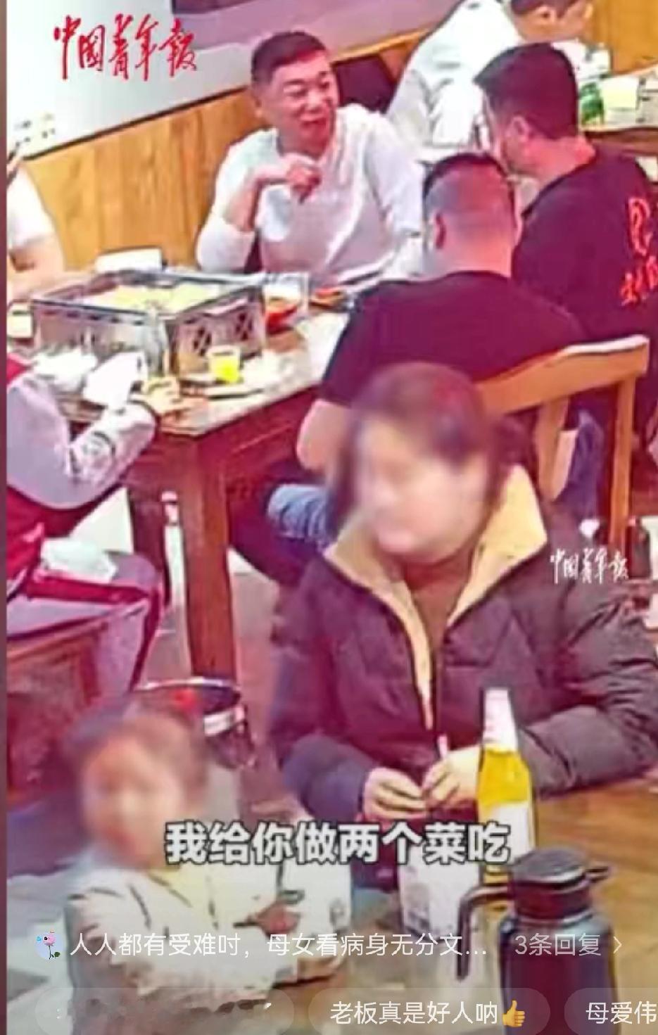 换做旁人或许会质疑,但老板看着孩子眼巴巴盯着饭菜,妈妈满脸窘迫卑微的样子,一眼就懂她们是真走投无路了,立马招呼母女坐下,吩咐厨房做了孩子爱吃的菜。
