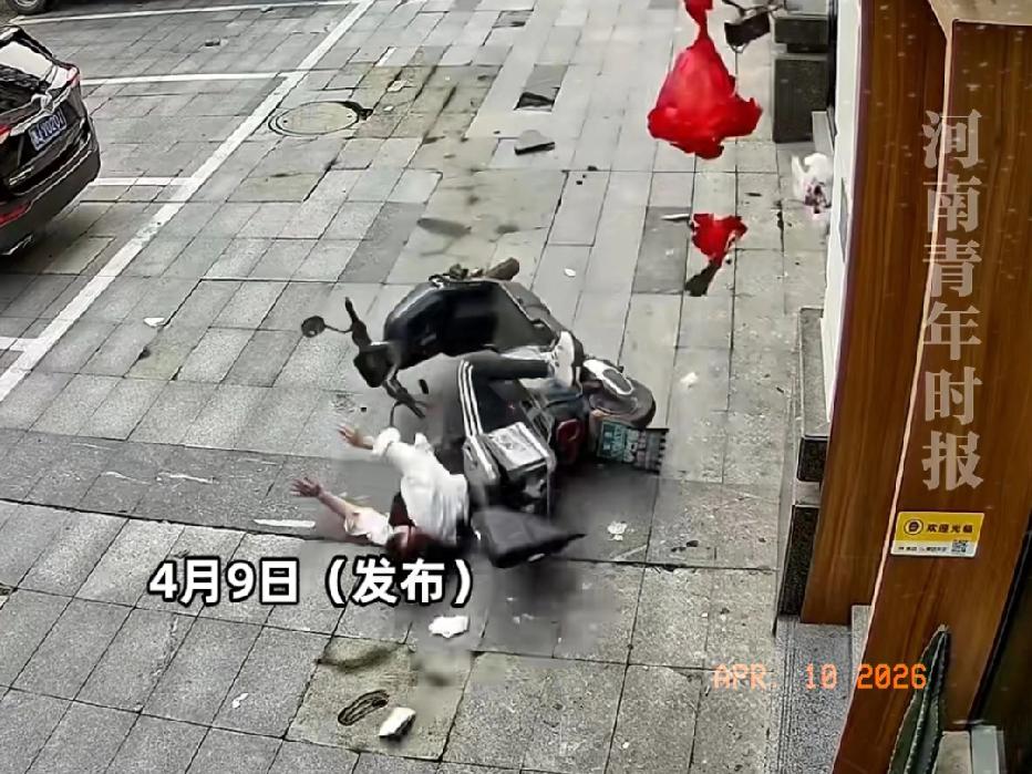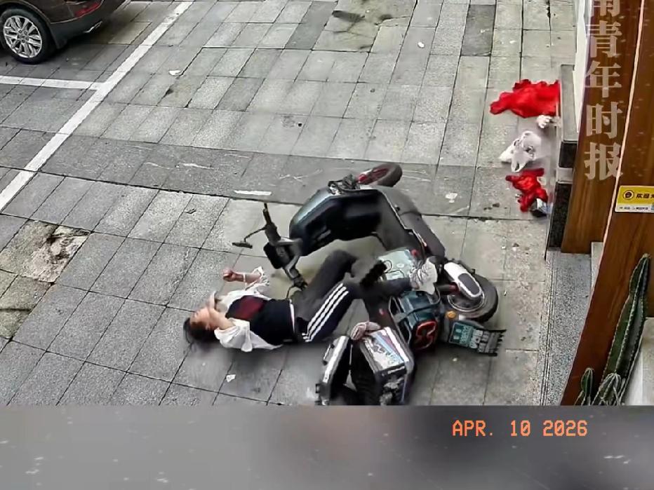 近日湖南常德,一40岁女子骑着电动车走在路上,突然,一块地砖把她连人带车绊倒在地上,整个人摔了个四脚朝天!