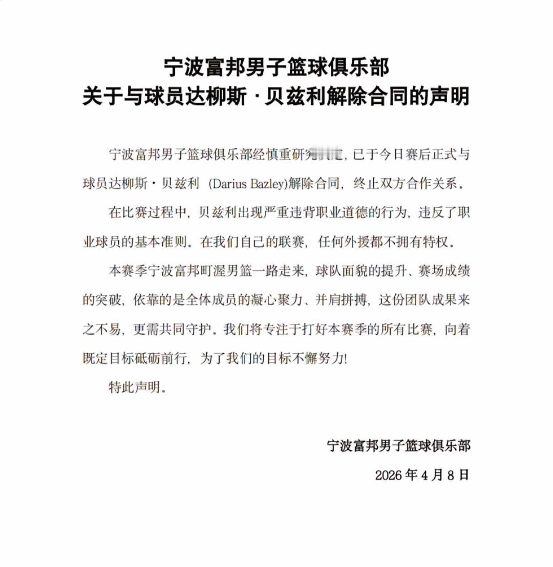 贝兹利被连夜开除,这其实是在“杀鸡儆猴”,威慑那些嚣张的外援,约束他们的行为。因