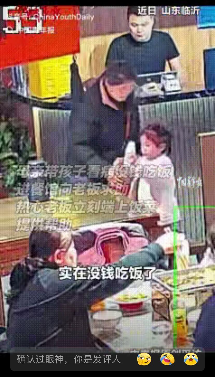 “活该发财!”近日,山东临沂一餐馆老板正在店里忙活着,突然一女子带着孩子走了进来,女子小声的问:“我带孩子来看病,实在没钱吃饭了,能不能在这里吃顿饭?”老板听到这话起初有点震惊,女子以为老板会赶她走,不料,接下来老板的做法,让女子热泪盈眶。