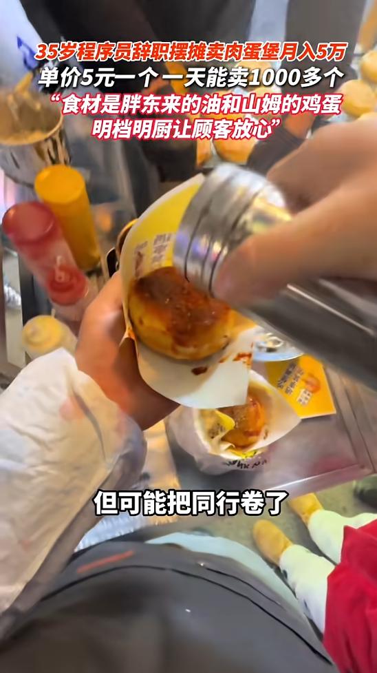 这件事被网友传到网上后,瞬间引发了热议,有人说,万万没想到,一个不起眼的肉蛋堡,居然能月入5万,也有人感慨,程序员转行摆摊,不是降级,而是换了一条更适合自己的路。