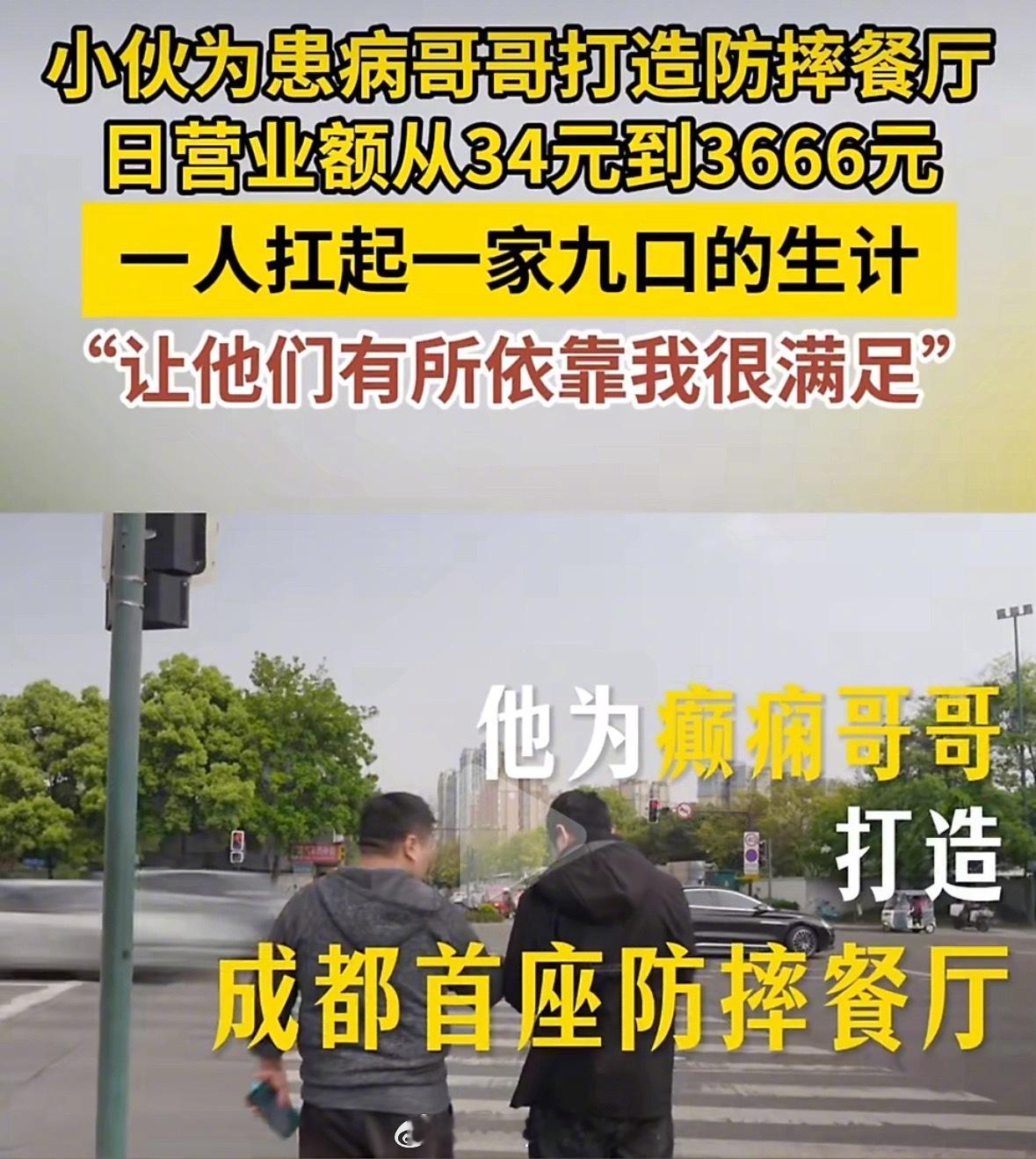 小伙为患病哥哥打造防摔餐厅35岁男子回乡开饭店养9口人 看了这个视频,心里挺触动的。成都的徐磊为了照顾患病的哥哥和一家九口,放弃外面的工作回乡接手老饭馆。他注意到哥哥容易在店里摔倒,没抱怨,而是实实在在把餐厅改造成了“防摔”的模样。“让家人有所依靠,就是这辈子最大的满足”——这话说得很实在。这种改造不只是装修,是把家人的安危真正放在了心上。比起那些宏大的东西,这种默默改造身边环境、让亲人生活得更安全的努力,更让人觉得踏实和温暖。