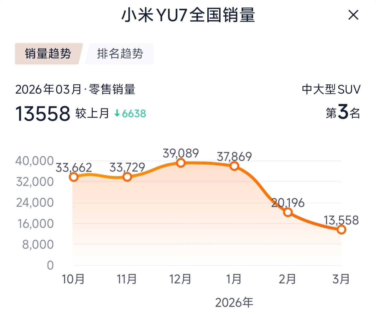 作为各自品牌的主力,小米YU7和问界M7的销量走势都不是很乐观