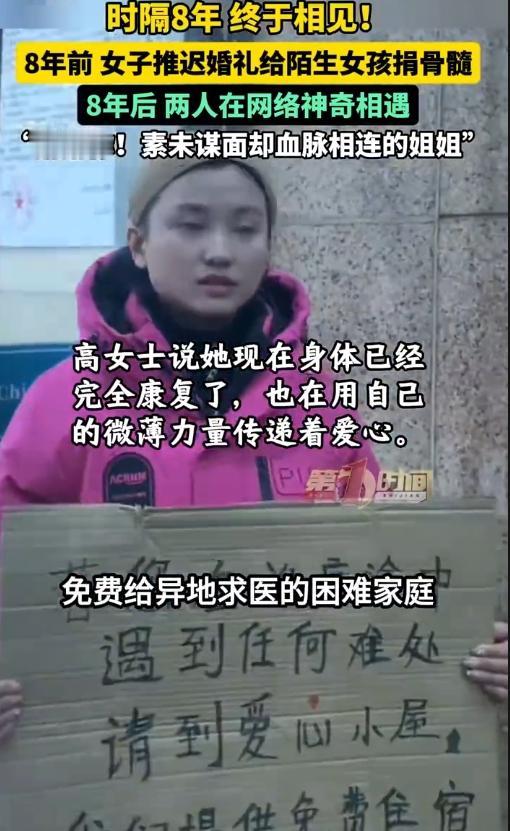 那会儿高女士正被病魔逼到墙角,就等着这救命的骨髓。女孩知道后,一句“婚礼能等,命等不得”,让两个陌生人的命运紧紧绑在了一起。