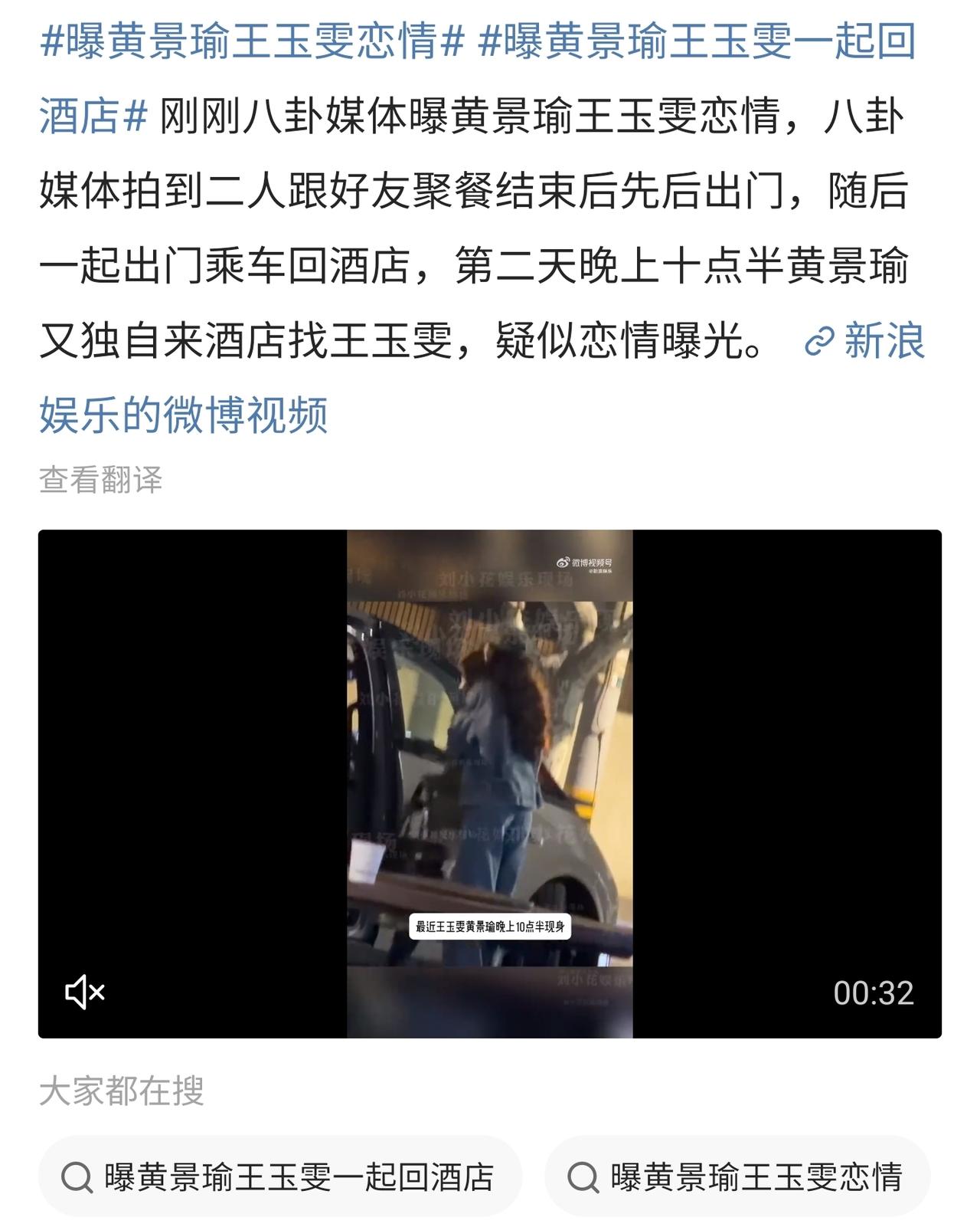 黄景瑜和王玉雯被拍了个聚餐后同回酒店的视频,全网就铺天盖地按头俩人谈恋爱了。