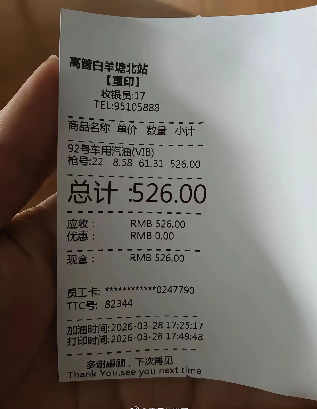 白色路虎车加油后逃单不是首次了,有网友曝光一辆白色路虎在湖北白羊塘北站加了油没付钱跑了,加油员也赔了526元。