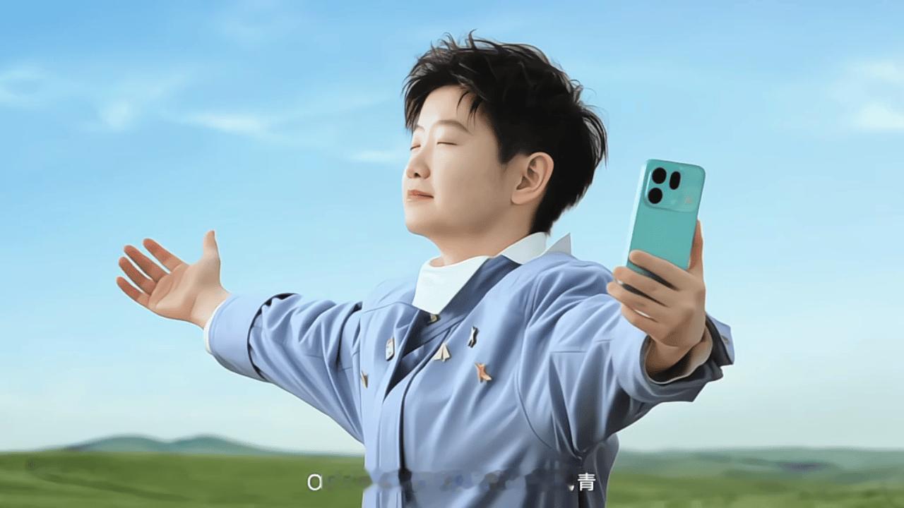 莎莎用上新手机了,天空青色,今年青色好,很适合今年,莎莎代言就是要用新款!这个