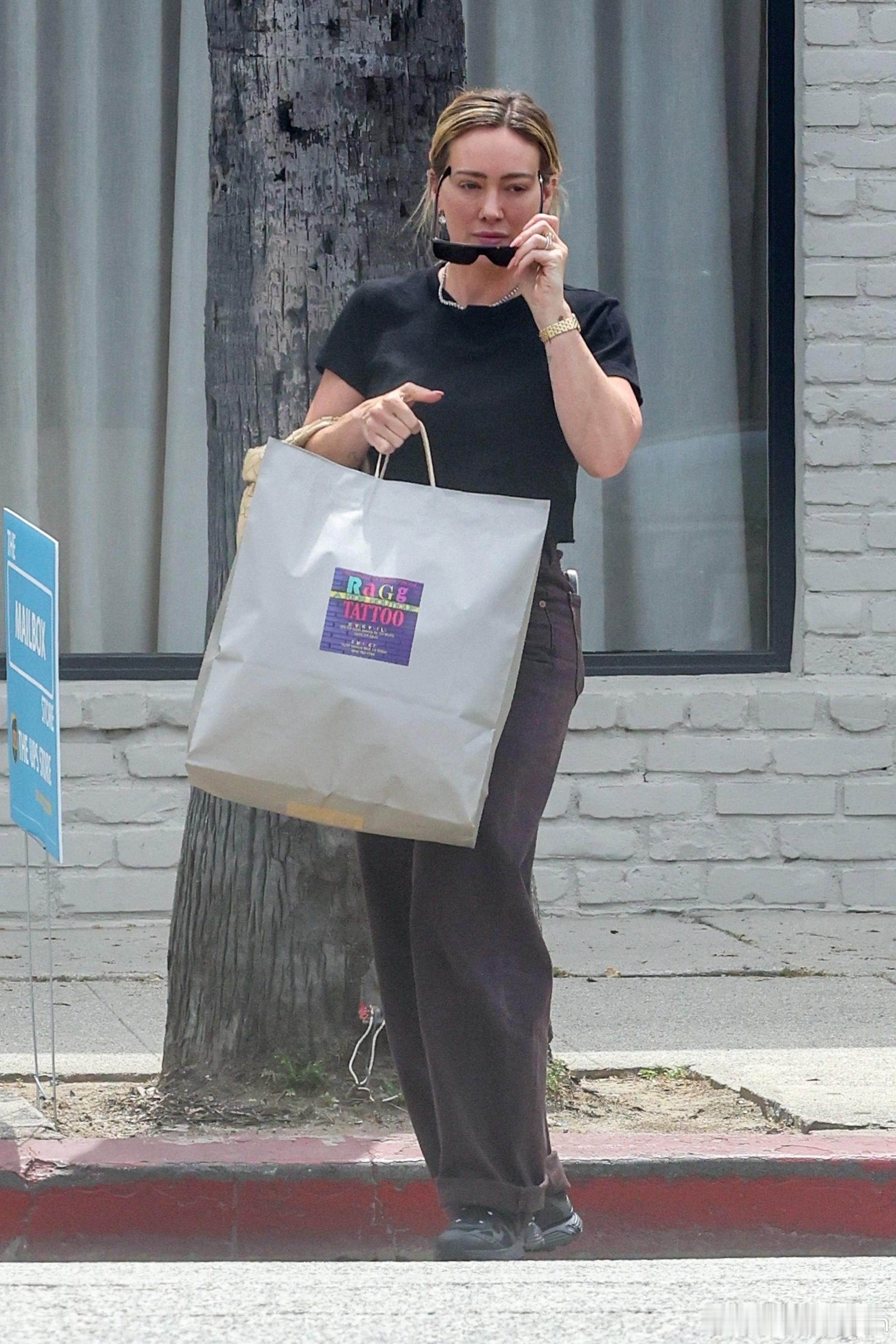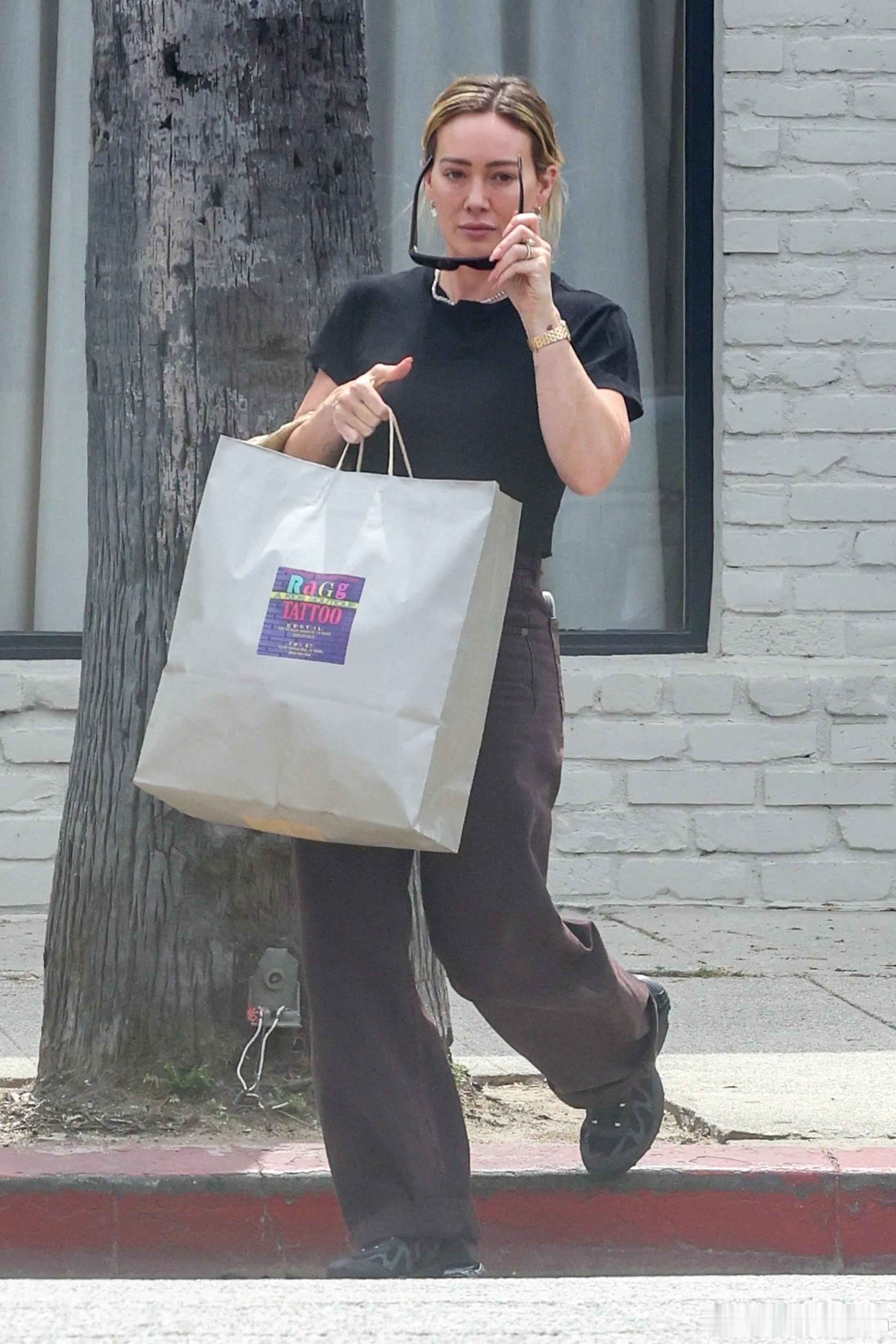 Hilary duff希拉里达芙在斯蒂迪奥城外出,独自一人到Ragg Tatto