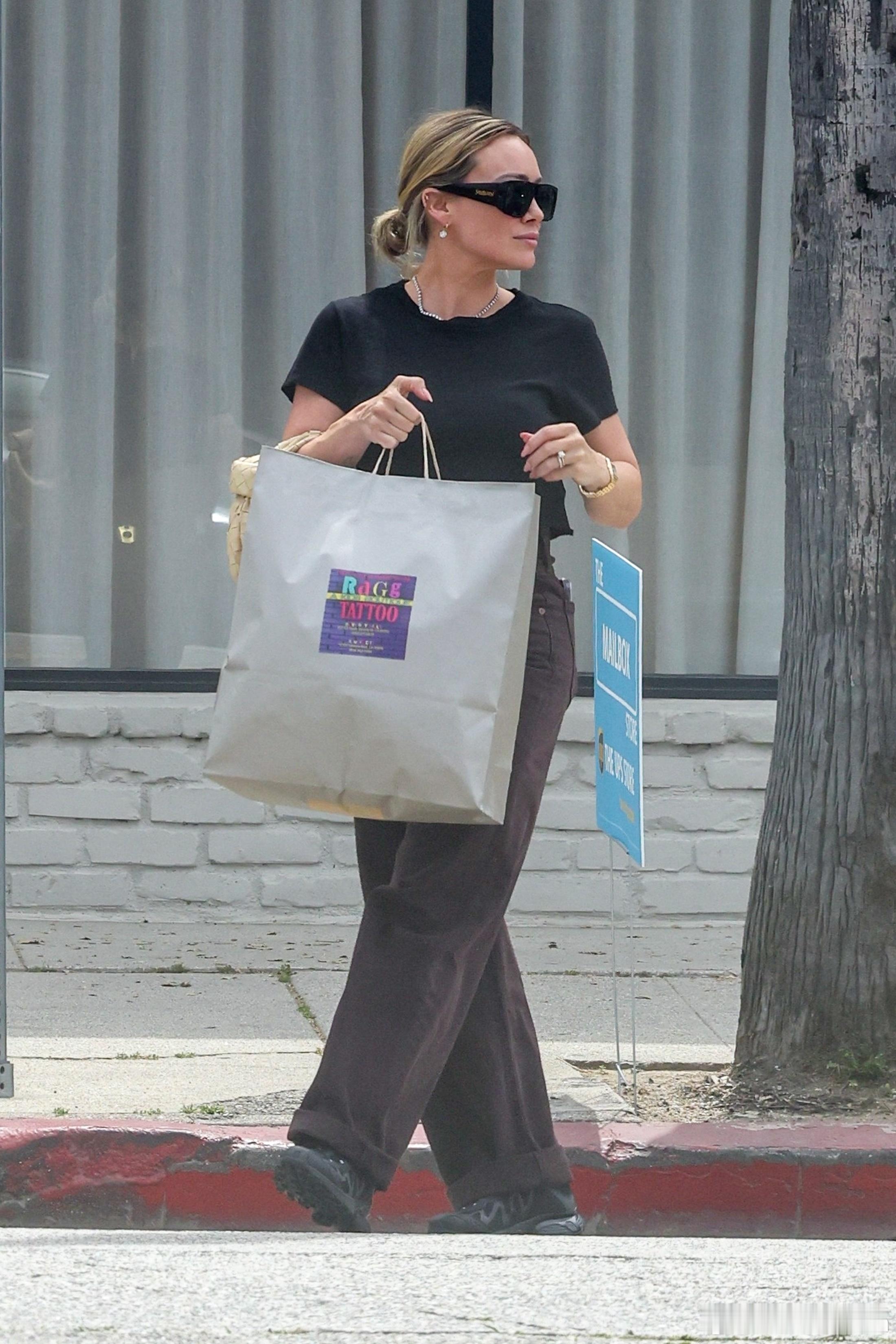 Hilary duff希拉里达芙在斯蒂迪奥城外出,独自一人到Ragg Tattoo童装店扫货