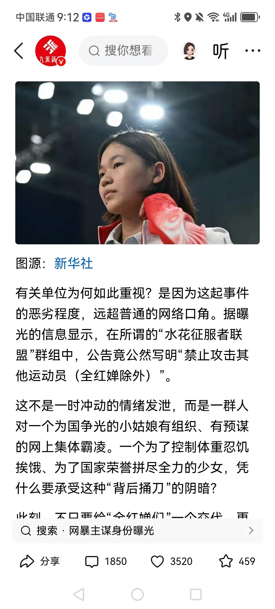最主要的是全红婵没有做过哪怕一丁点损害国家、社会、公众的事情,这都能遭网暴,太可怕了。