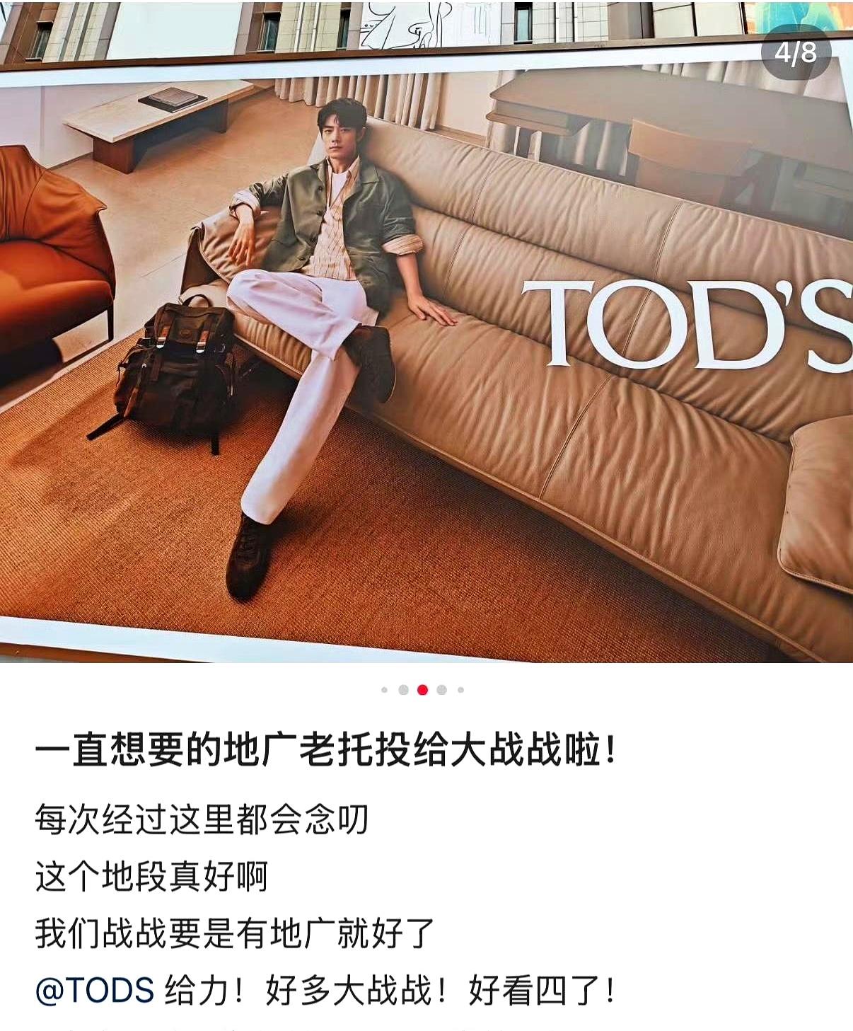 这回是托德斯放的2026春夏系列广告,主题叫“意式故事”,肖战作为全球品牌代言人,把那种绅士味道拿捏得死死的。